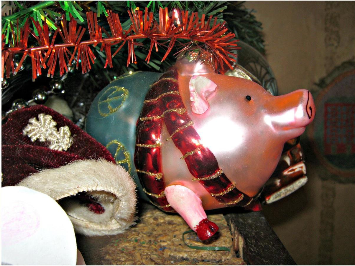 В 2019 году на нашей ёлочке поселился и этот симпатичный поросенок-пацифист. Его приобрел муж. Порадовал))) старого хиппи))) меня, то есть))) А елочные гирлянды мы покупаем с ним почти каждый год - чтоб было что-то новенькое.