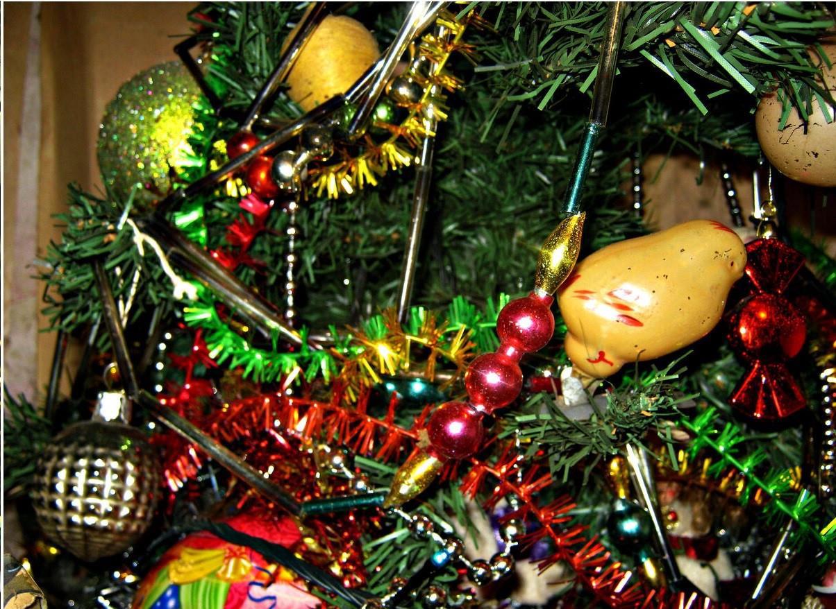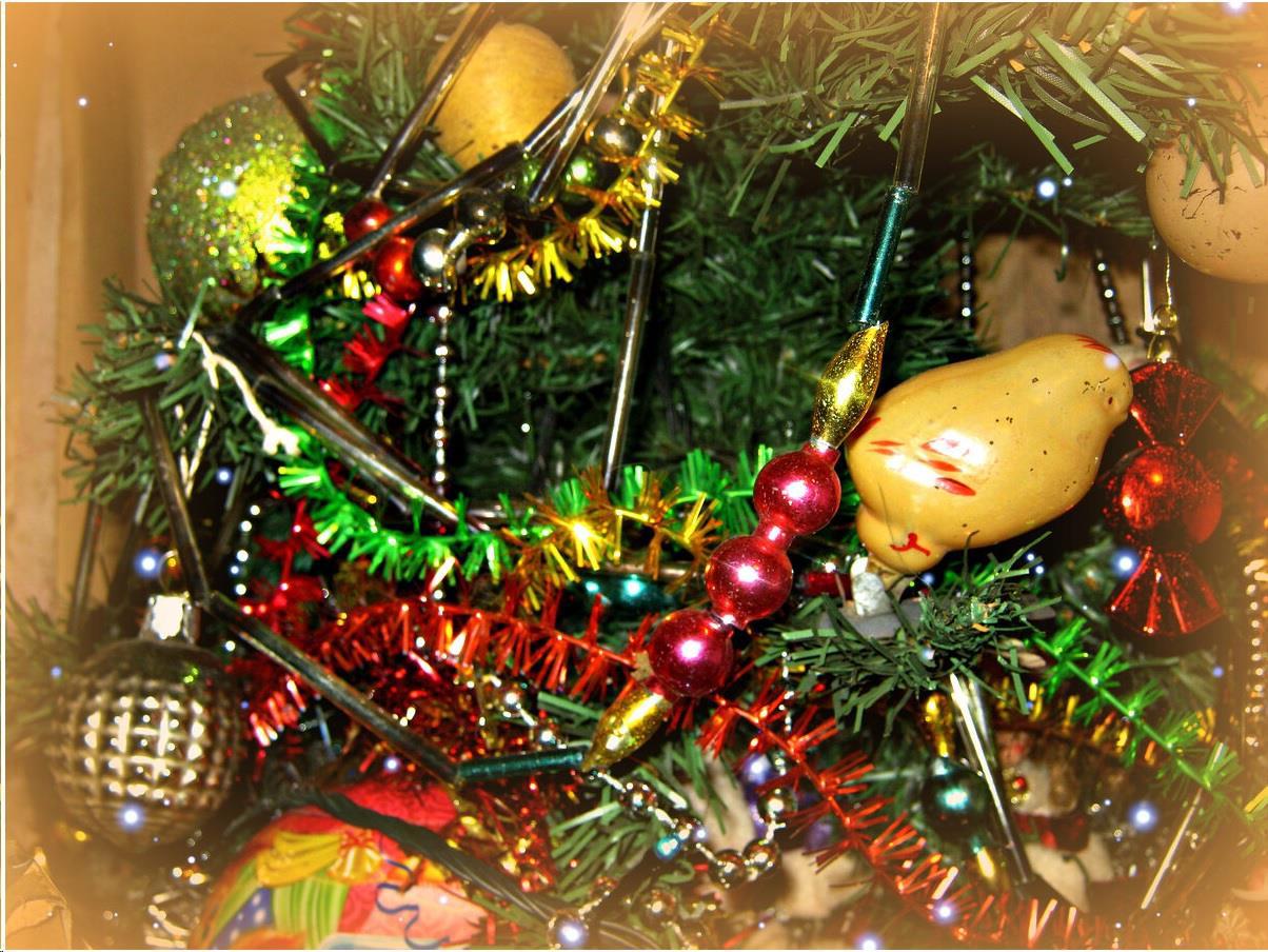Кстати, пару слов о ёлочке. Конкретно та красавица, что в этом году осталась скучать в коробке, "радовает нас" что-то около 18 лет. Ее подарила мне работодательница, хозяйка сувенирной лавки, у которой я работала продавцом. Ну, как - подарила: у елки при перевозке сломалась подставка))) Но я все равно очень благодарна: хорошая ёлочка, красивая, пушистая. А подставка у нее - от предшественницы, которую купила моя мама, когда мне было 5 лет. То есть, она верой и правдой служила нашей семье примерно 27 лет! Очень удобная была: ее можно было разобрать и положить в коробку. Ее деревянный ствол и некоторые детали-ветки до сих пор лежат на шкафу. В пору моего детства искусственная ёлка была отличным вариантом для маленькой комнаты в коммуналке (те, кто отваживался ставить живую, потом до лета хвою из дальних углов выметали). А потом... потом она стала почти членом семьи. Такой, знаете, дальний, но любимый родственник, живущий в деревеньке Большая Коробка Нашкафинского уезда, приезжающий в гости под Новый год и щедро одаривающий нежностью и счастьем, и семейным теплом! Ведь каждый раз на ёё ветках оживала НАША история!
