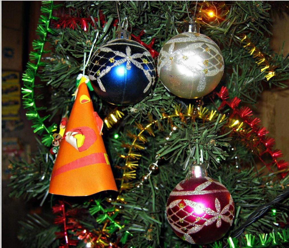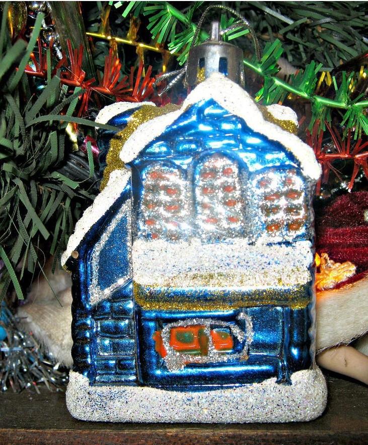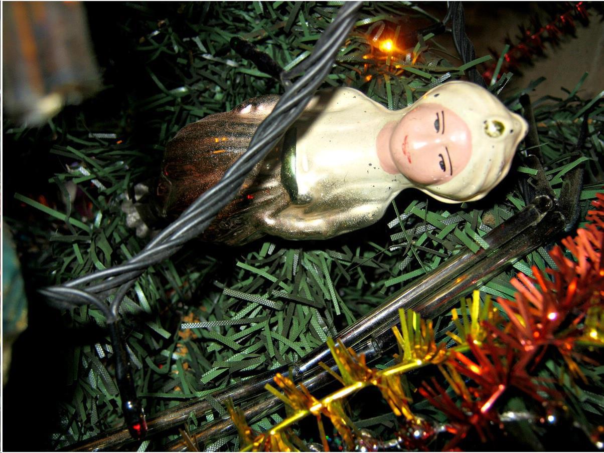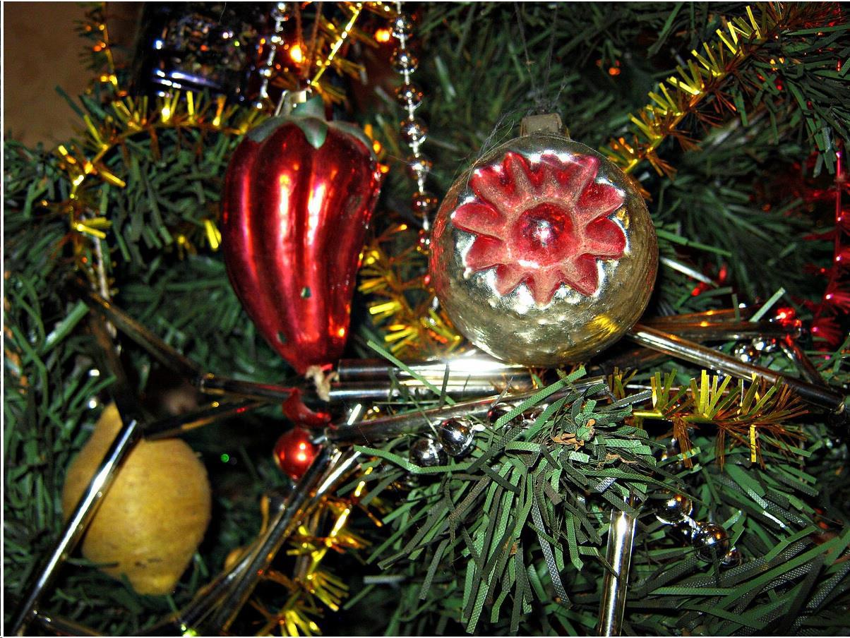 Этот старенький шарик принадлежал моей маме. Во всяком случае, сколько себя помню, он был. Полагаю, появился в наборе наших игрушек еще до моего рождения. А этого красавца на прищепке нам подарила бабушка, кажется, в конце 70-х. Таких игрушек у нас несколько, но у остальных прищепки либо сломались, либо потерялись((( Поэтому юноша с некоторых пор скучает на ветке в одиночестве.