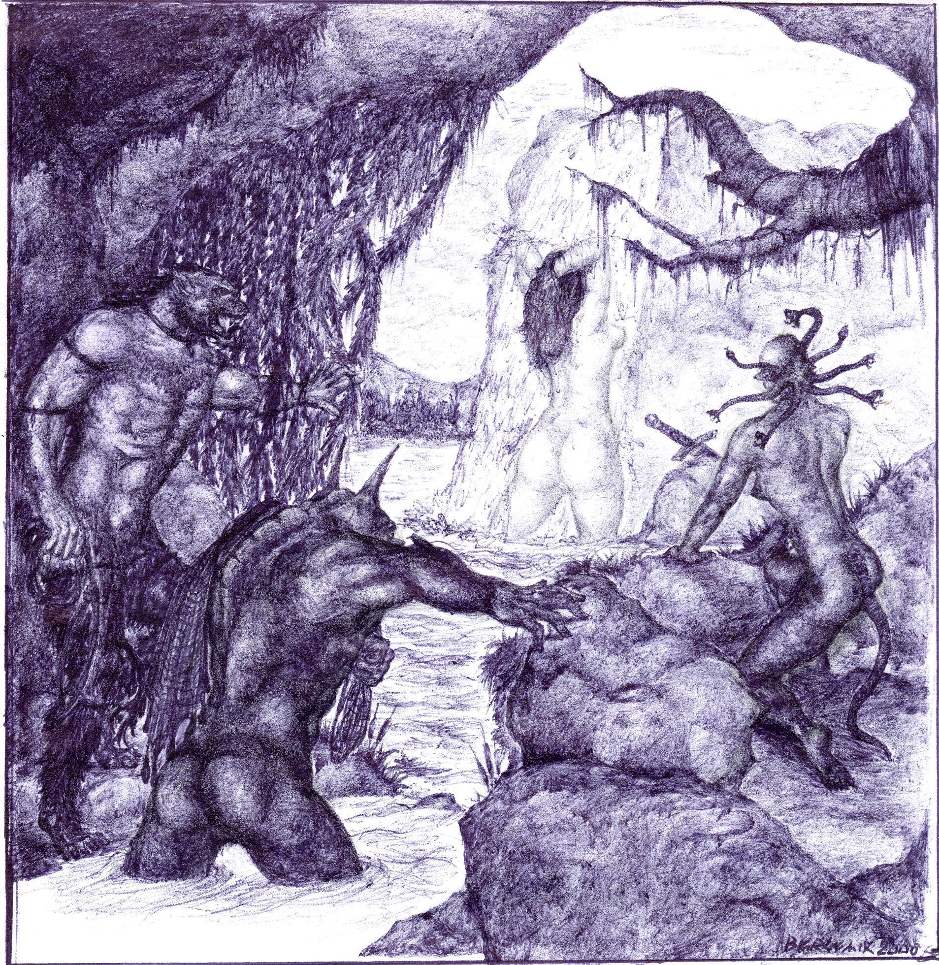 Тетрадь появилась на свет на 48 листов в клетку. Заведённая к концу первой четверти и со второй страны заполняемая премудростями ОБЖ, сейчас она стала меньше на треть и грозила закончиться. В середине, давая прикурить обеим предметам, находился форменный бардак – логотип метал-банды Darkthrone, несколько черепов с гитарами и без, ведьма с вороном и, само собой, голышом, да ещё с анатомически лживыми верхними полушариями поистине титанических размеров, начинавшихся от самых ключиц.