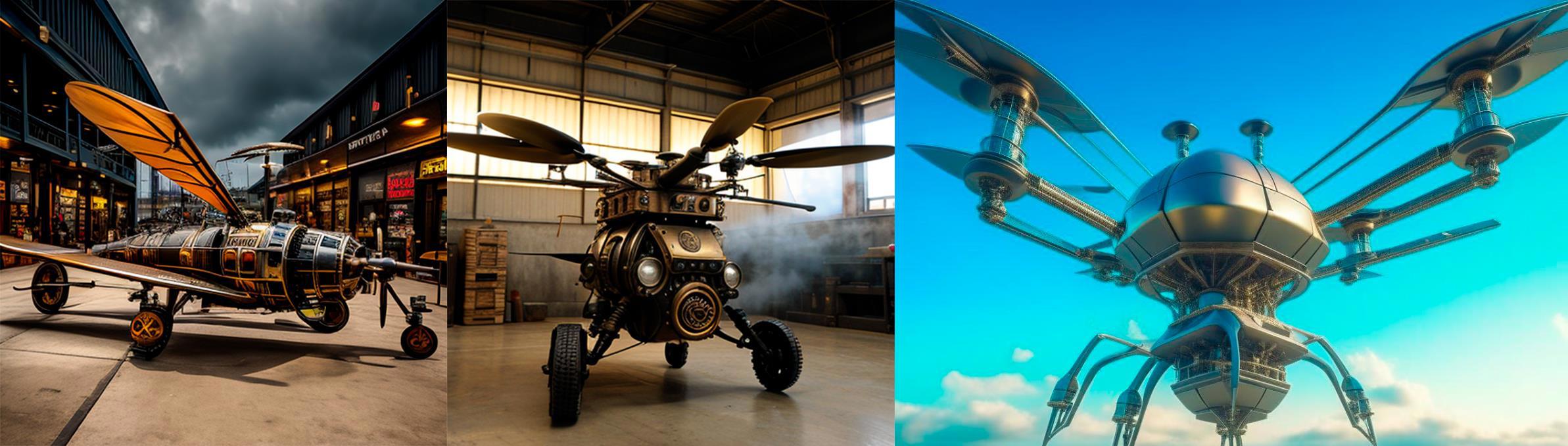 Проще всего оказалось нарисовать с помошью нейросети октокоптер в стиле стим-панк: