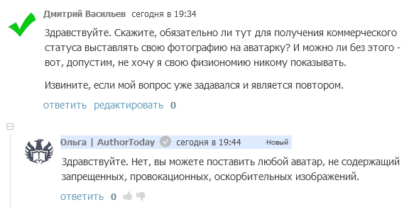 Нужно ли для получения коммерческого статуса выставлять свою фотографию на аватарку?