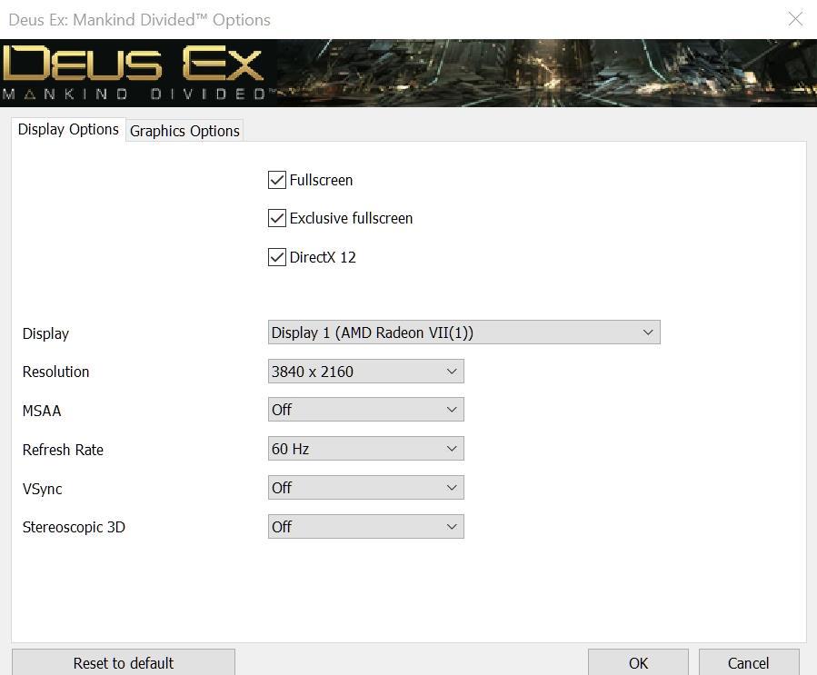 Для DeusEx MD я рекомендую не использовать MSAA вообще, а если использовать, то не выше 2х и желательно не в 4к, а как максимум в 2к. При попытке включить 4х или 8х у вас будет лагать даже меню. Есть определённая разница в фпс между 11DX и 12DX, что указывается разработчиком в меню настроек, но какой для вас более выгодный вы узнаете только попробовав сами.