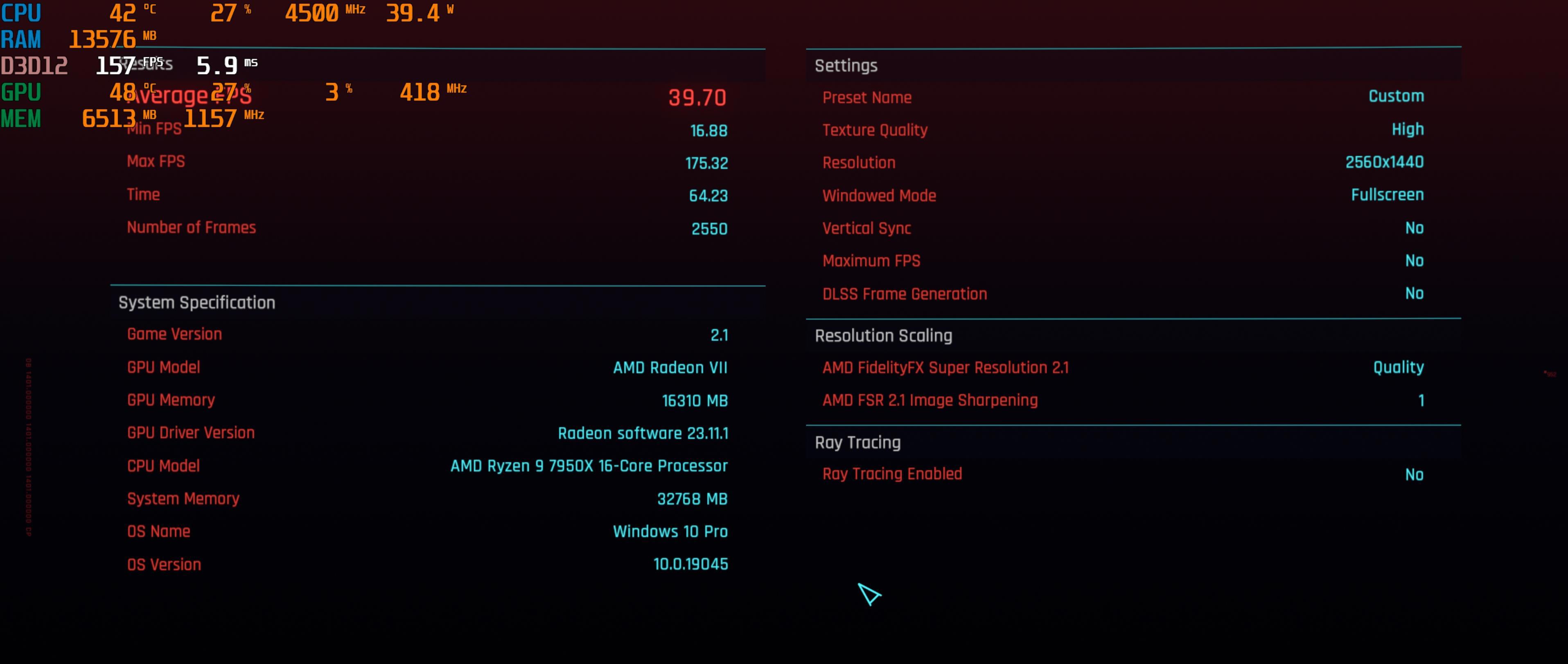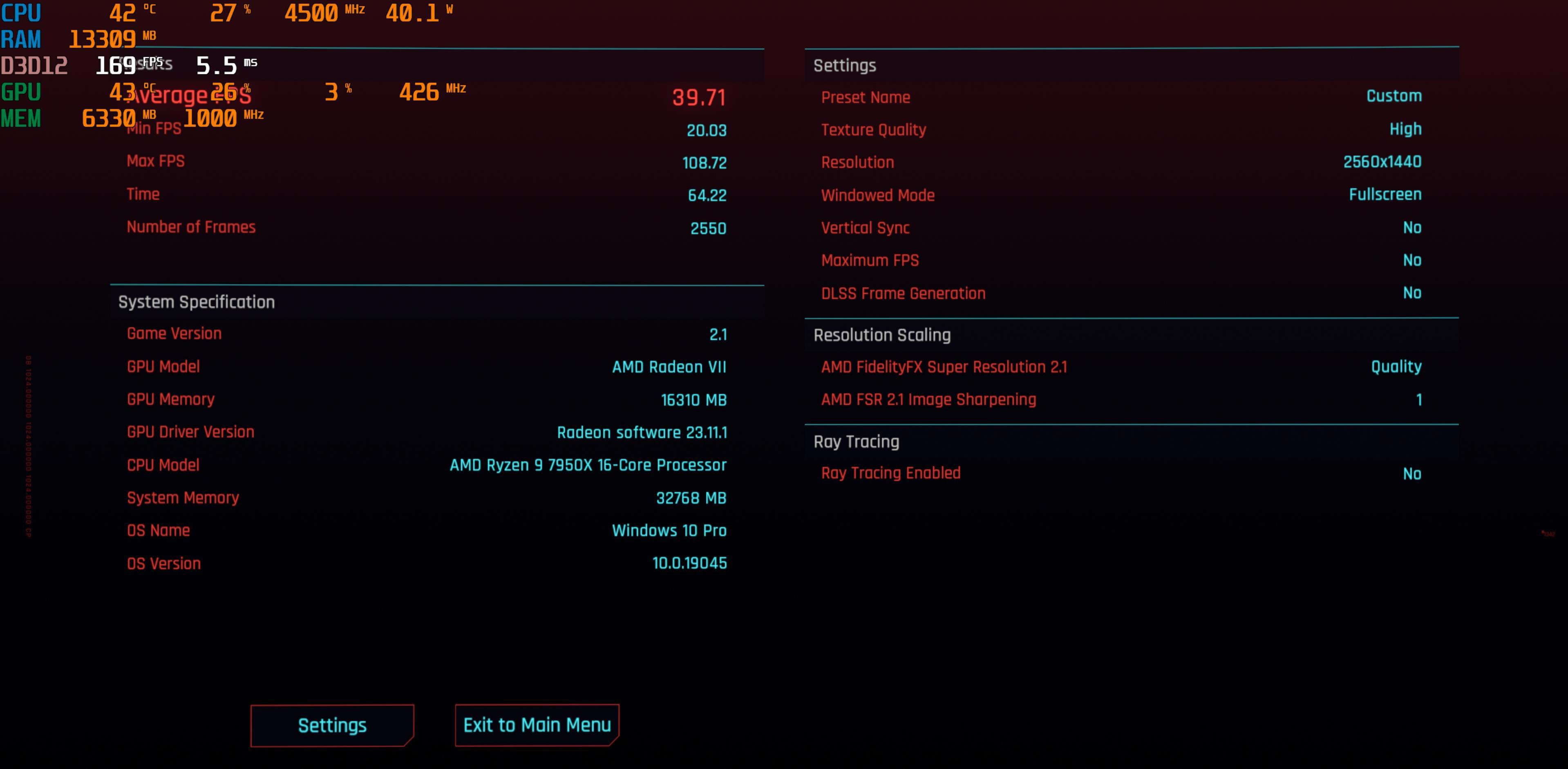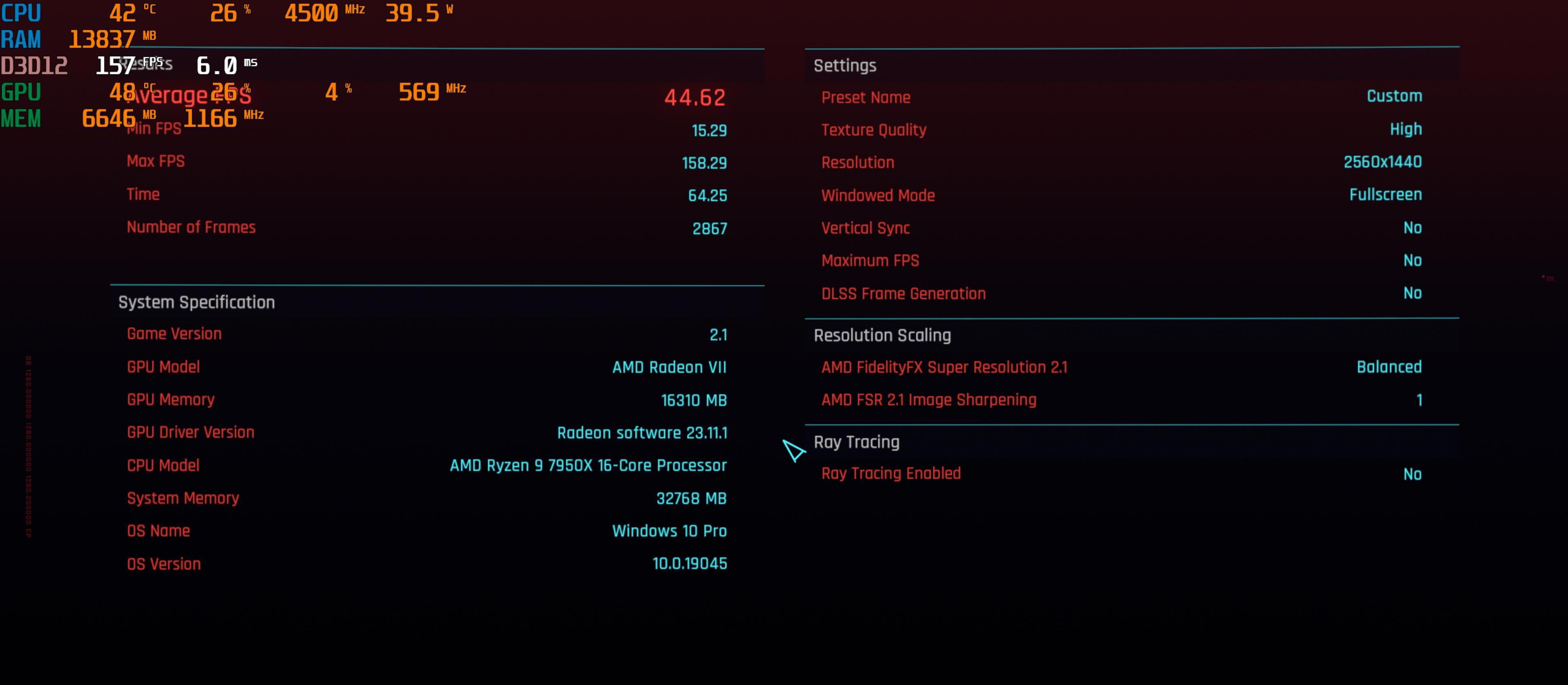 Для киберпанка на картах АМД я бы рекомендовал выбирать между настройками FSR баланс и качество, а так же поиграться с коэффициентом. Сильное влияние на ФПС оказывает настройка