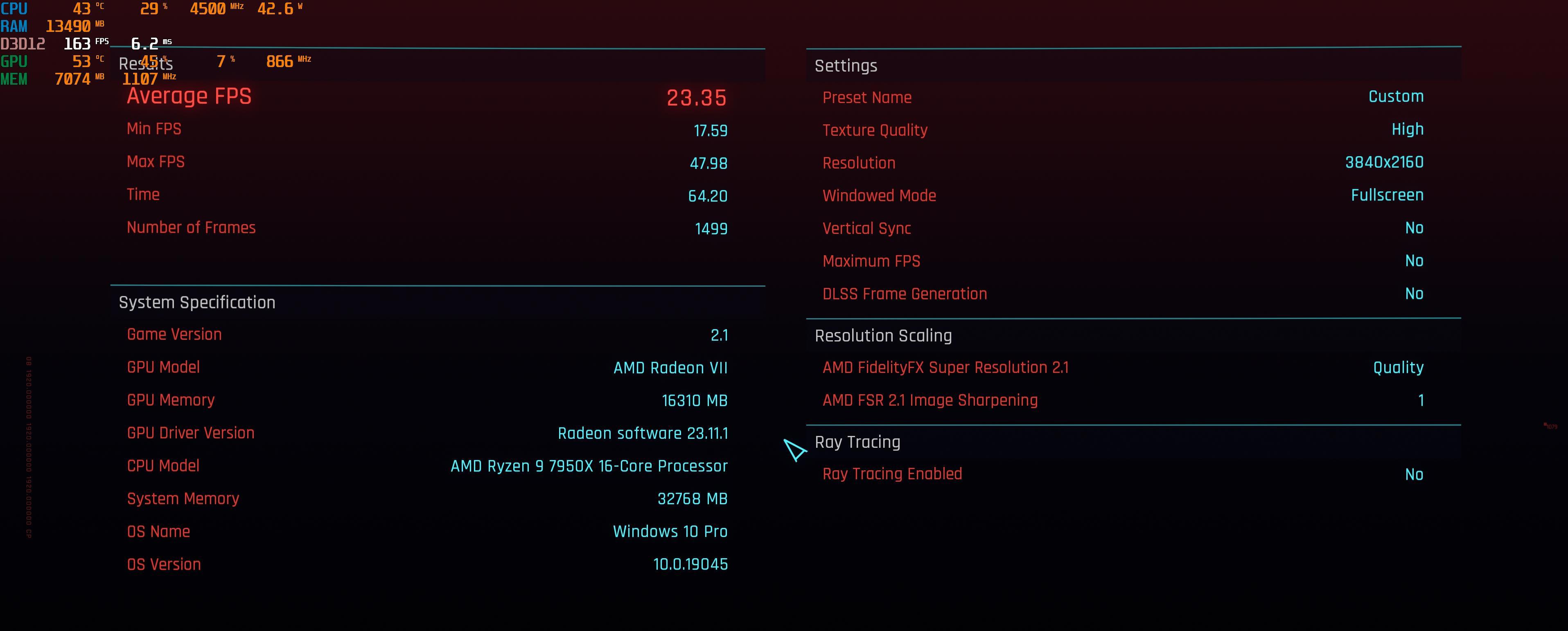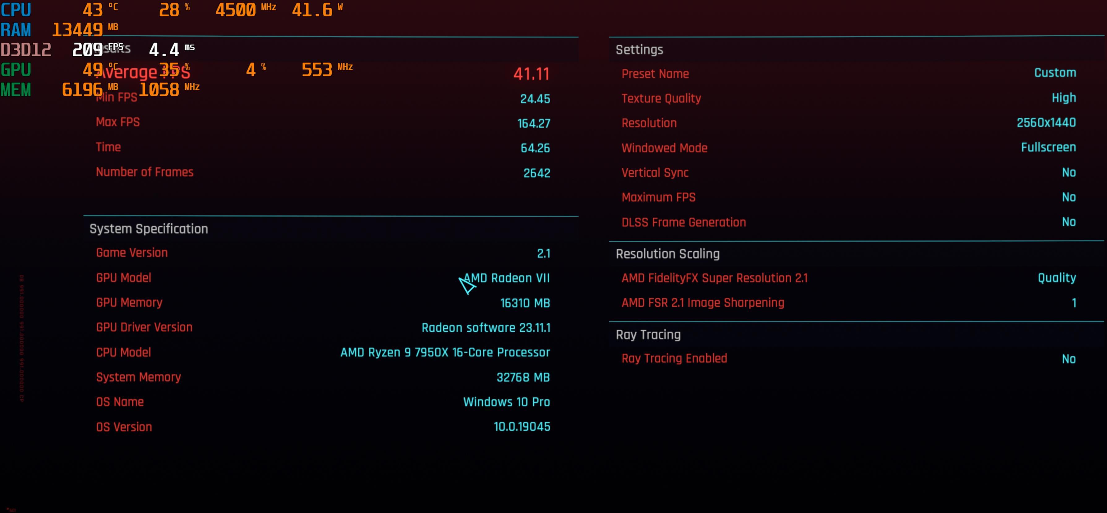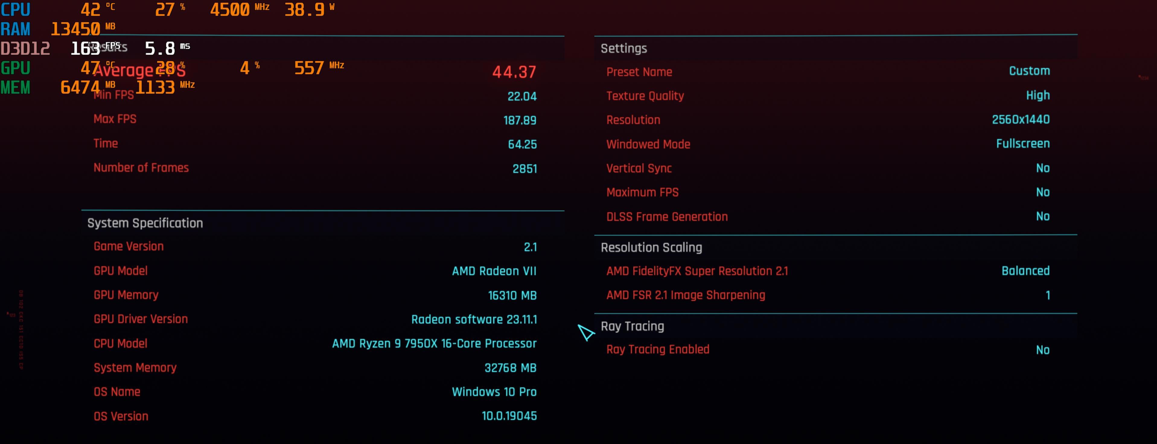 Для киберпанка на картах АМД я бы рекомендовал выбирать между настройками FSR баланс и качество, а так же поиграться с коэффициентом. Сильное влияние на ФПС оказывает настройка
