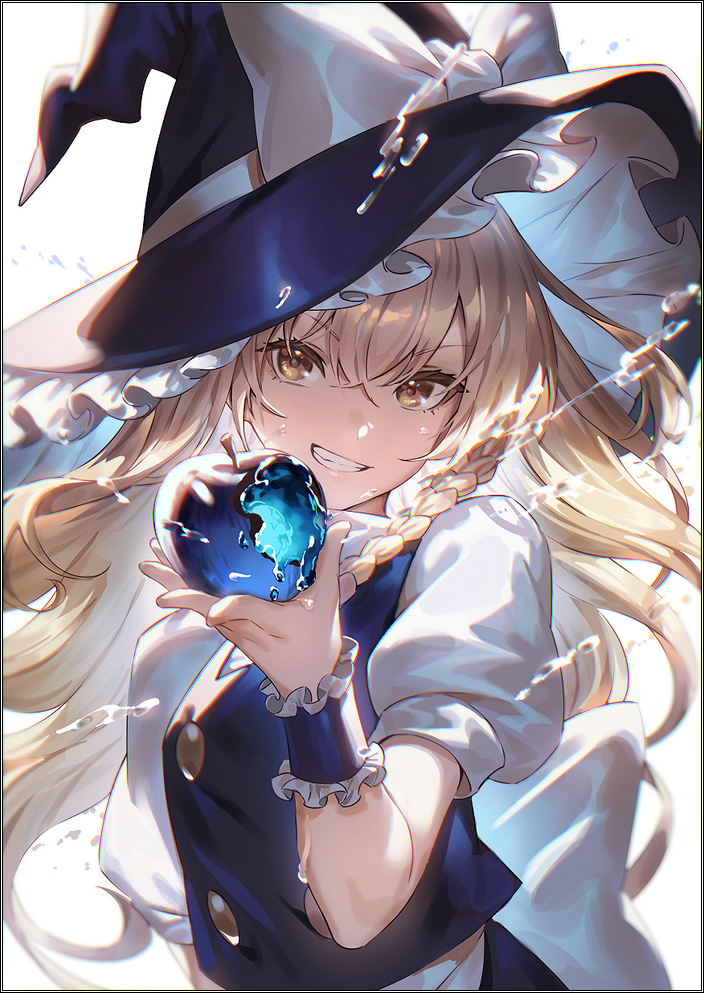 Вторая версия обложки. Мариса откусила плод магии и с хитрой моськой протягивает его.