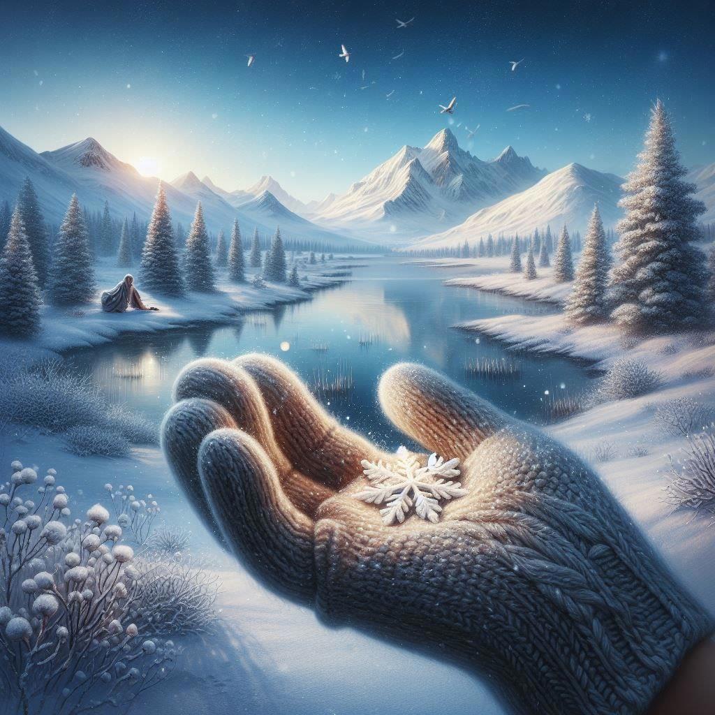 Дремлет снежинка на женской перчатке,
