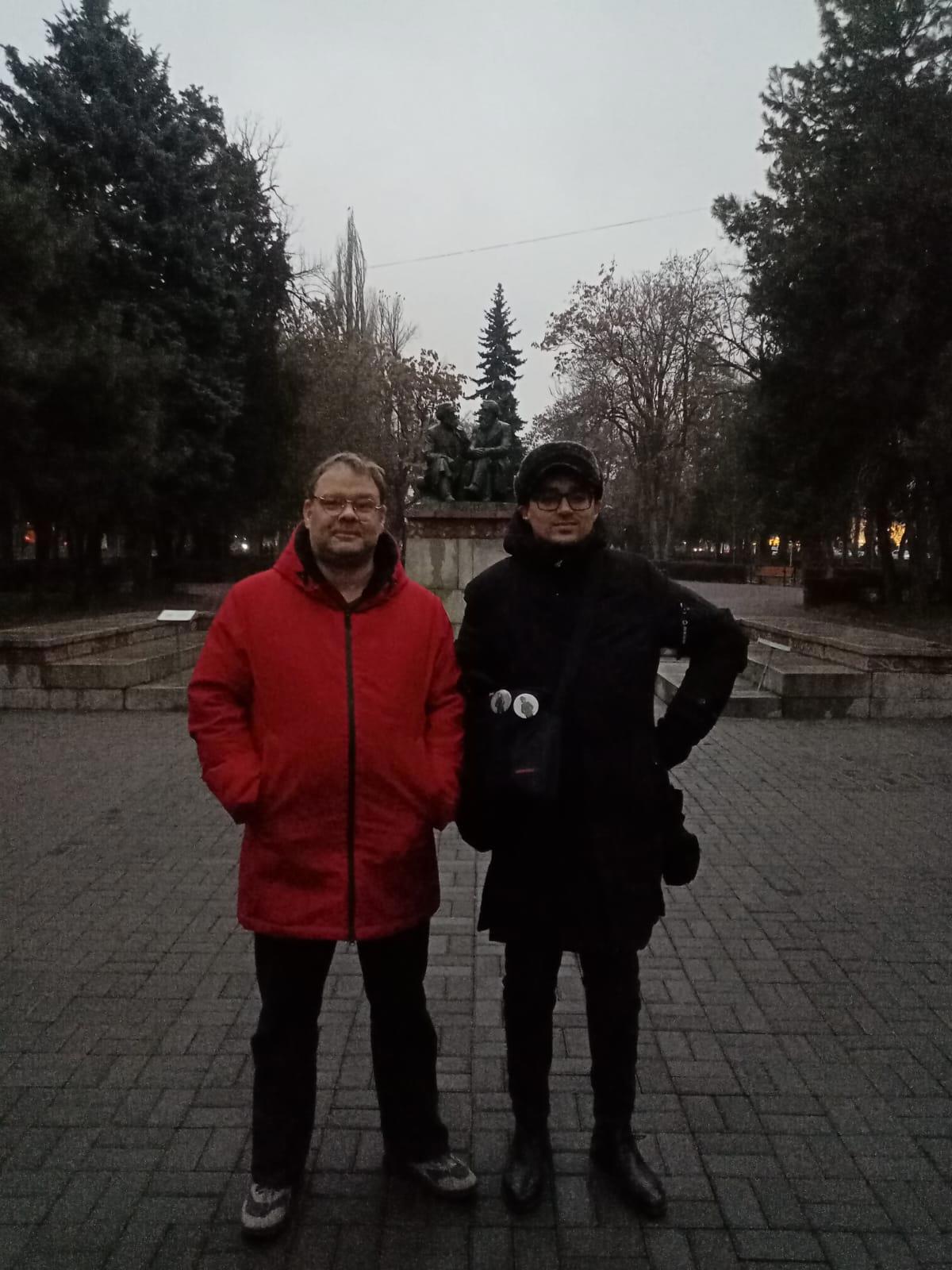 С разрешения Тимура - наше с ним фото на память. На фоне Маркса и Энгельса.