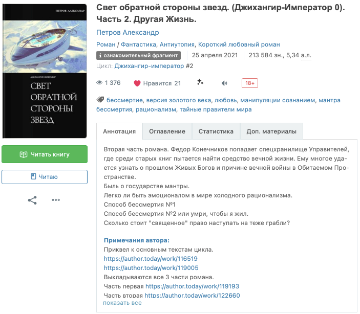Сюжет закручен до предела. Если в первой книге, пара богов читала воспоминания о Федоре, то теперь и сам Федор читал еще более древнюю историю. Это с одной стороны интересно, с другой прыгание по эпохам создало сложности в восприятии текста и утомило.
