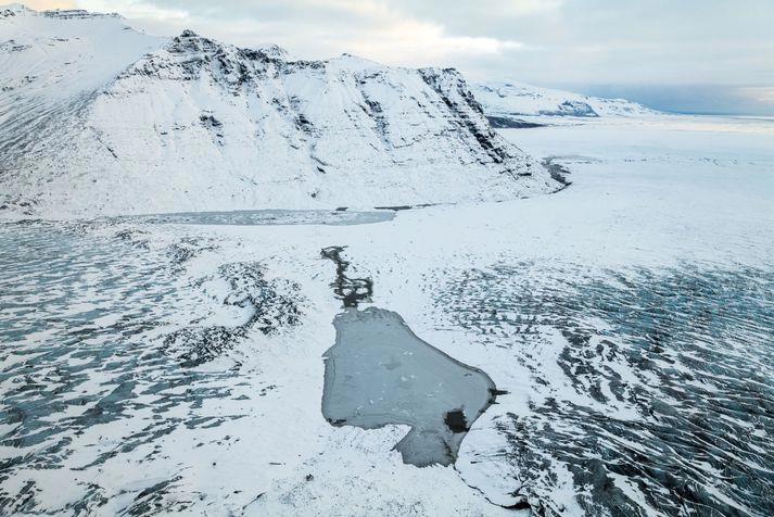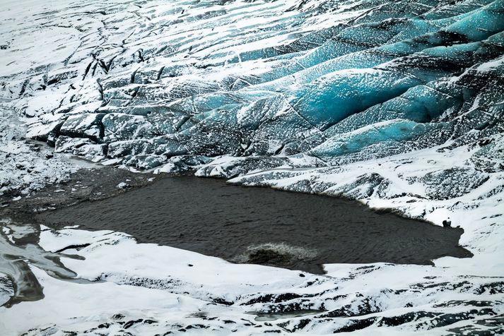 На фотографии видна жидкая вода, образующаяся под ледником в результате вулканического процесса.