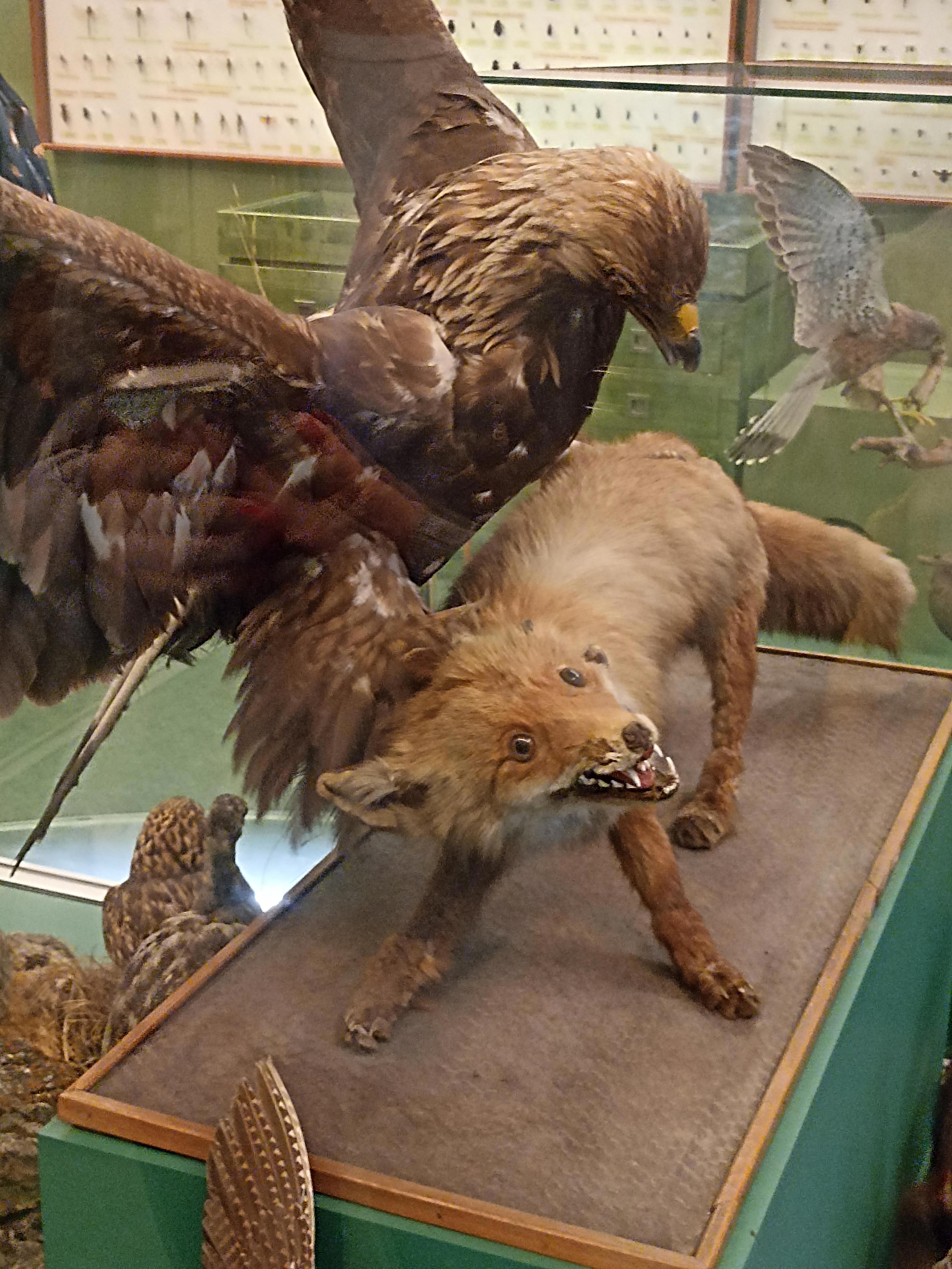 Вообще говоря о чучелах: конкретно в нашей краеведке они старые — либо 50-60-е, либо вообще начало 20 века. А новые просто так не сделать: закон самодеятельность запрещает и чучела должны делать только профессиональные таксидермисты. И вот один такой и обитает в Дарвиновском.