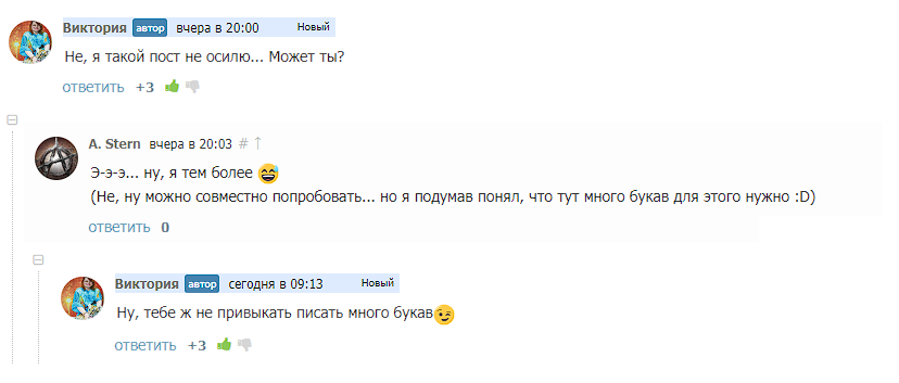 В двух словах, я там сказал, мол, норм идея для поста. Ибо, идея от Виктории исходила и знач её это какие-то лавры нынче