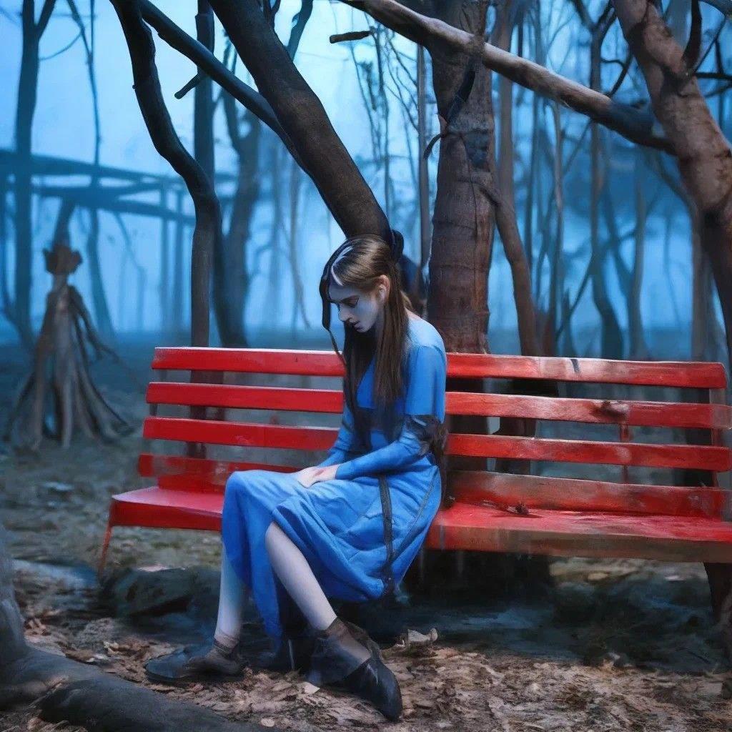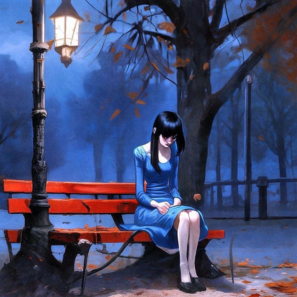 "...Холодный осенний парк пуст. Деревья, мрачные тени, устремлённые в небо. В центре парка, средь усыпанной сырыми листьями мостовой, фонарный столб с тусклым огоньком свечи внутри. Под столбом деревянная скамья. На ней Эмма видит себя, прозрачный, истощённый до костей призрак с опущенной вниз головой. Руки проткнуты шприцами, шприцы подают в вены чёрную слизь из тонких вен, тянущихся к грязной земле, позади скамьи."