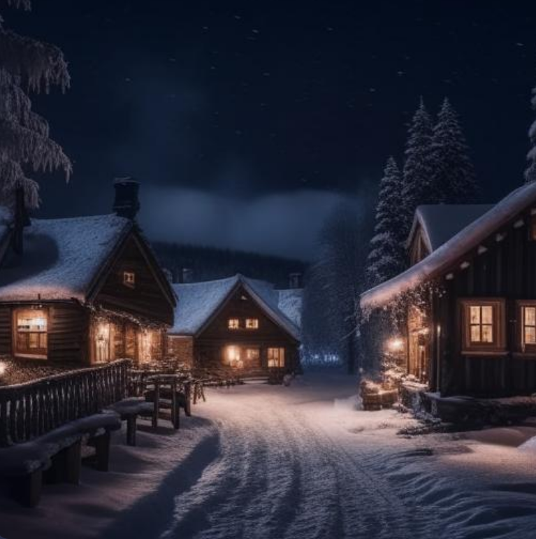 Для визуализации - зимние деревеньки от нейросети Kandinsky: