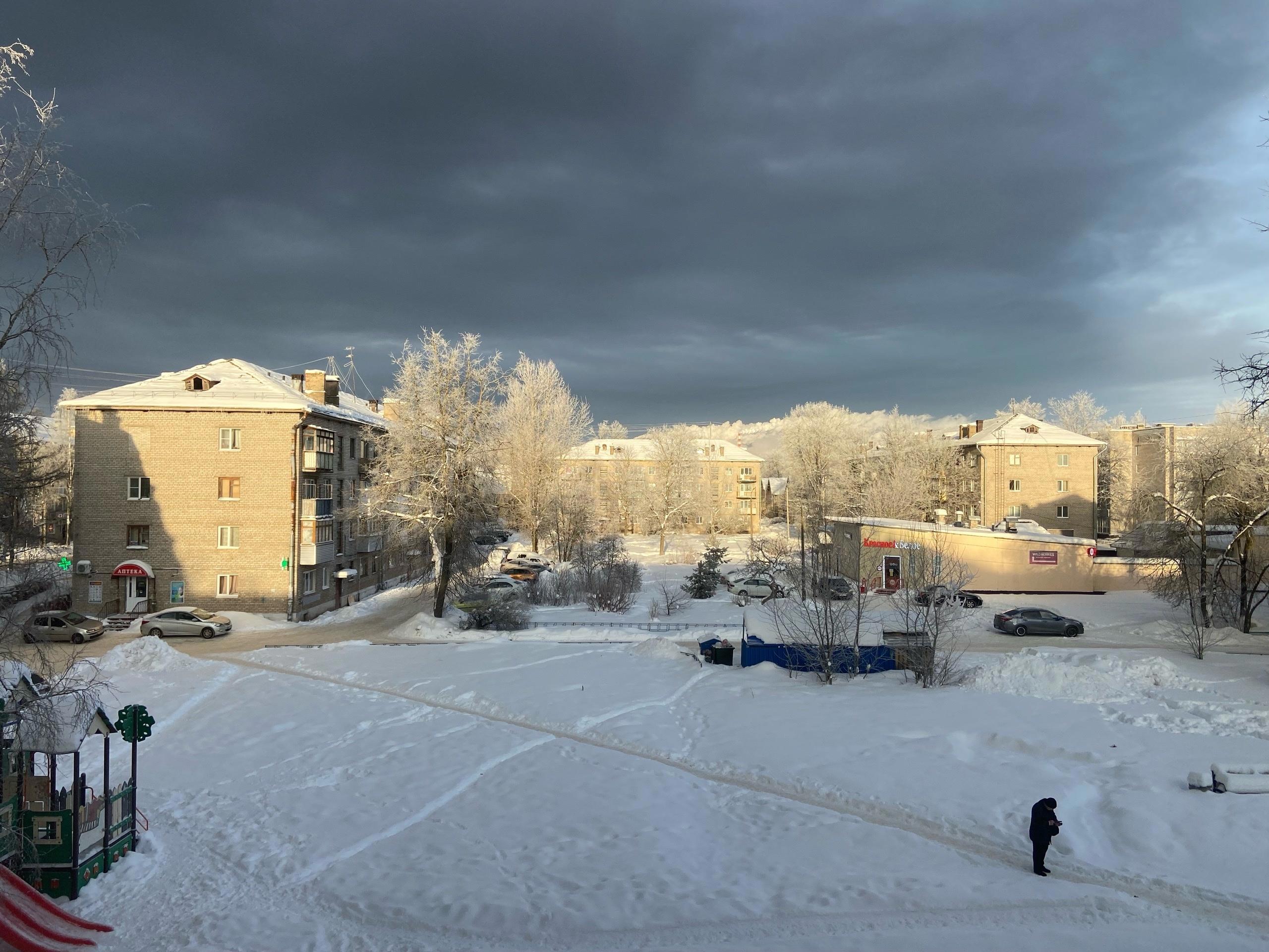 Автор: Николай Владимирович БеляевДля затравки - фото, снятое сегодня утром (ну, у нас, как вы помните, когда проснулся - тогда и утро). Мороз и солнце, день чудесный (полдень, -22) и тьма, пришедшая с Ладоги, накрывает город: