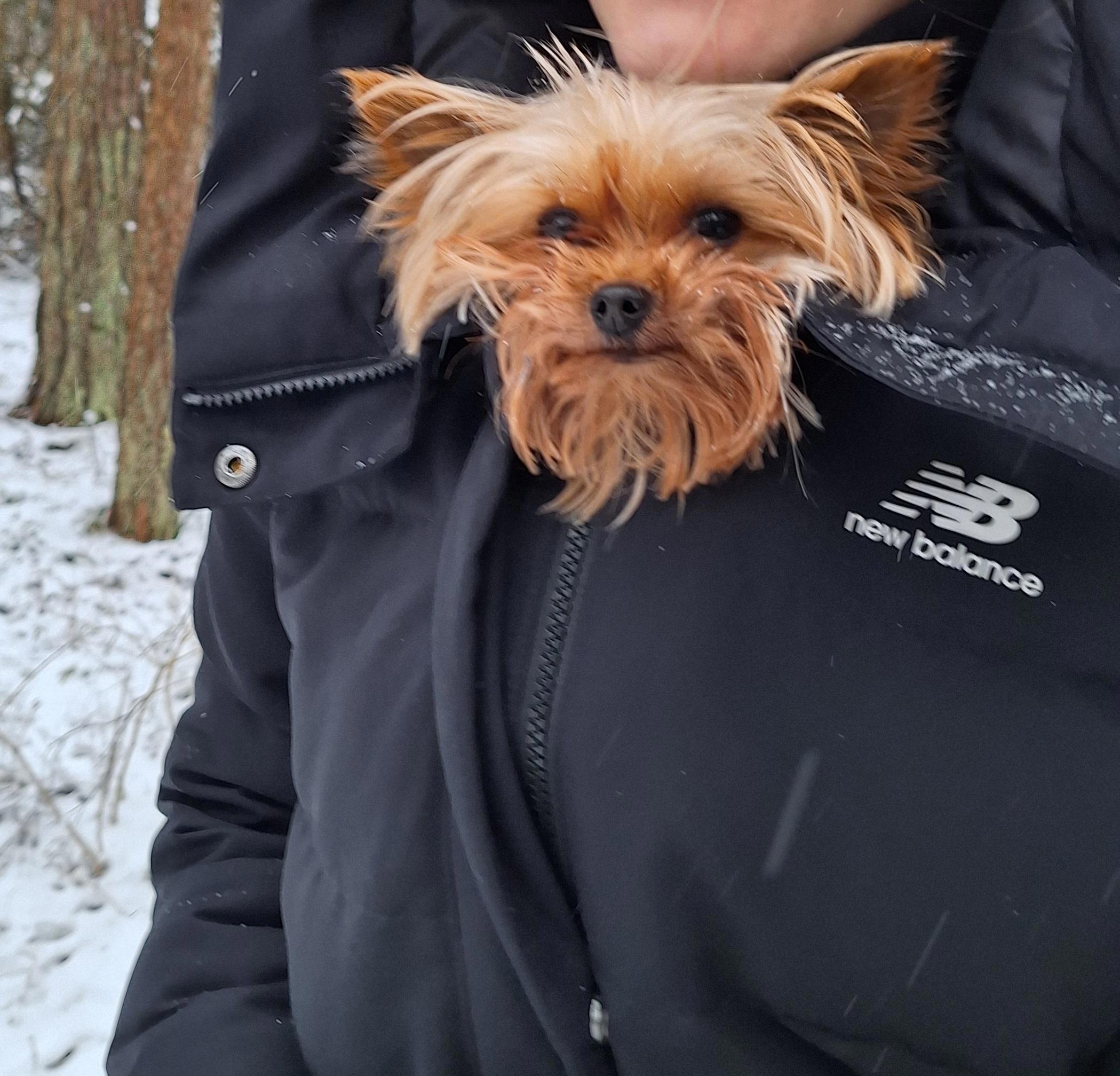 Кстати, йорк Тири на фотографии путешествовал с нами - в совсем морозные дни таким образом.