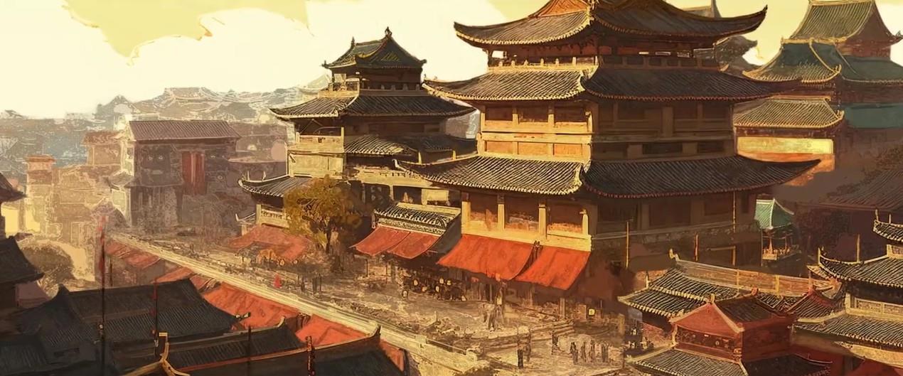 Это часть сцены прогулки героев по столице Пустынного края — резервации для лояльных асуров, тоже изгнанных из Небесного города, как и основная, более воинственная часть клана Асюло.