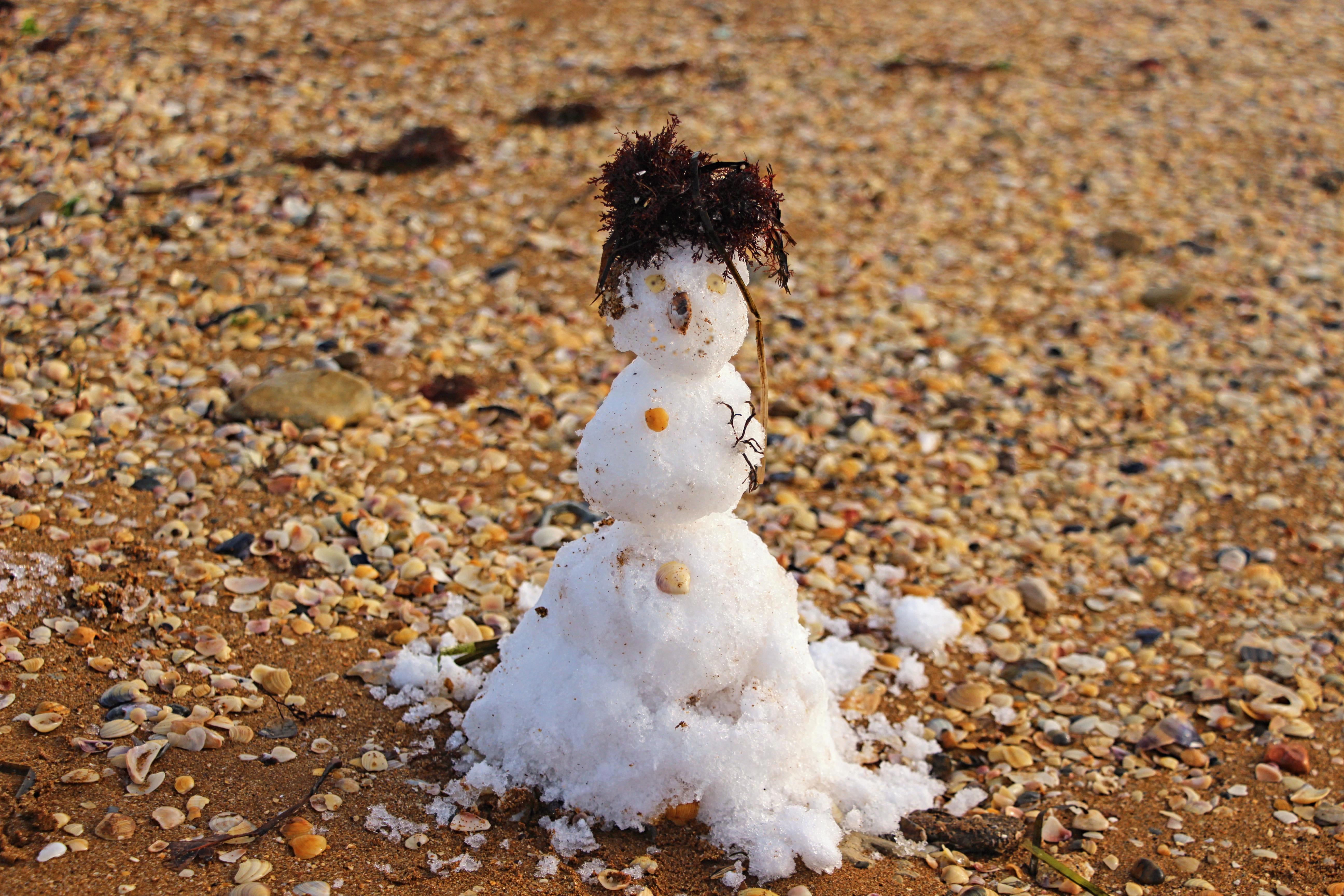 Вместо глаз у него ракушки, а волосы заменили водоросли. Вот такой он крымский снеговик!