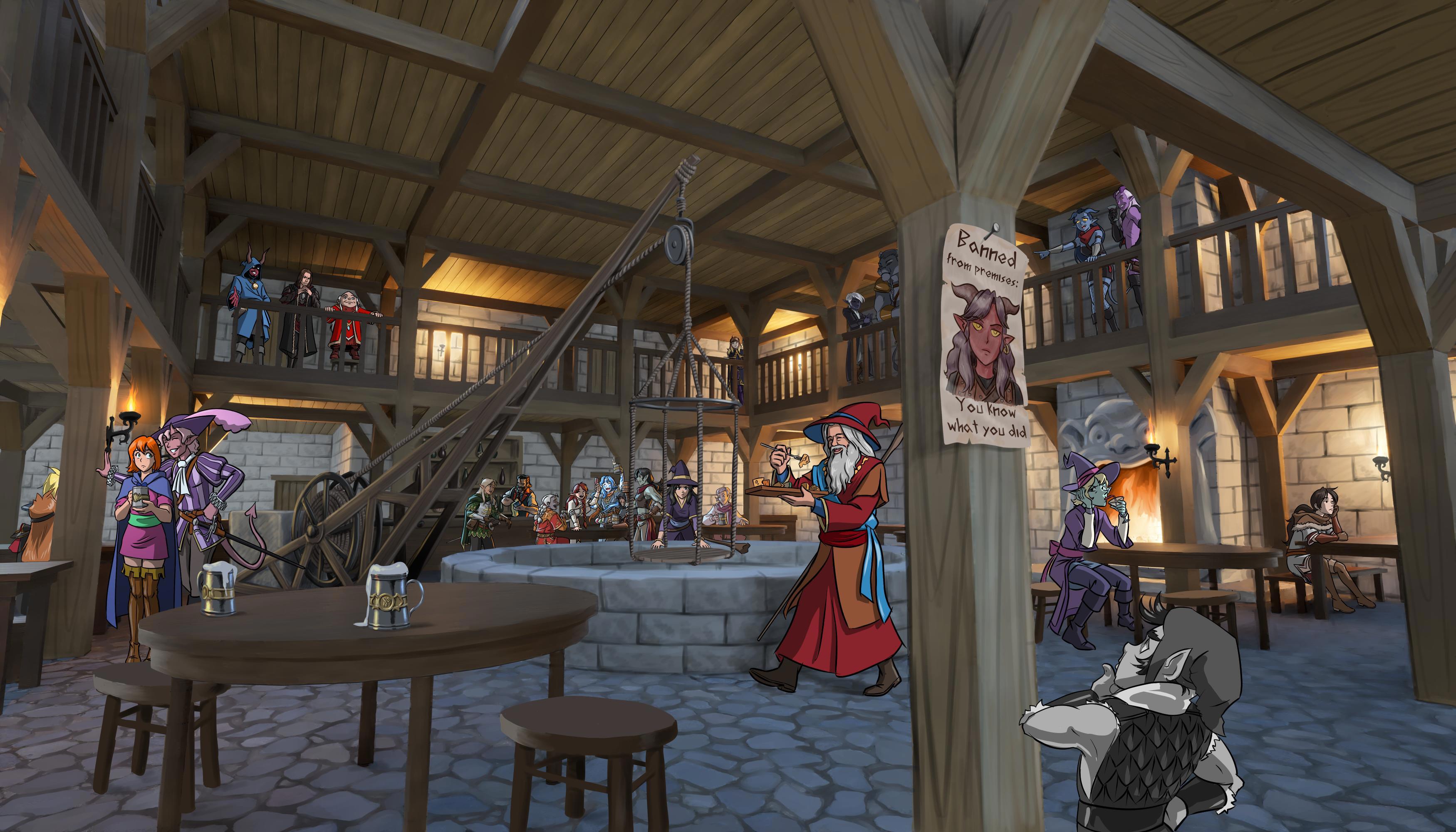 Но начнём с бонусной картинки - таверна в Уотердипе! Что называется, найдите все камео. По традиции, есть и внутренние - например, напарницы "настольной" версии Ангелы.