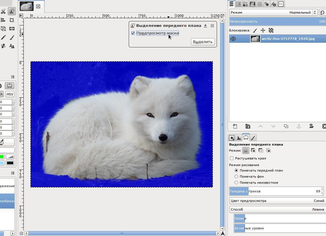 Собственно экзекуция мохнатости готова, теперь осталось нажать "предпросмотр маски", это прямо над изображением, если кто не заметил и ждать. По результату видно, что синь подкралась к мохнатости вплотную. Это песец, я вам скажу.