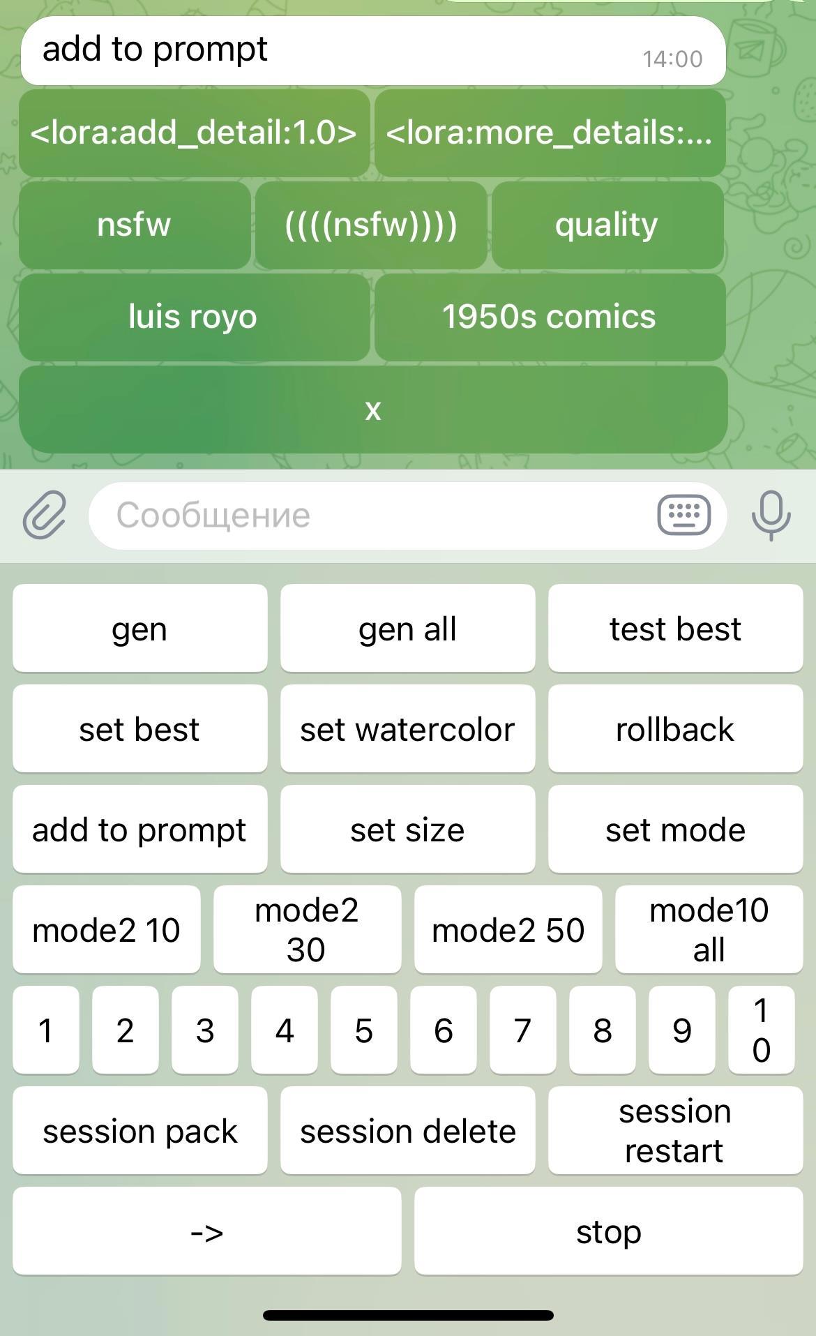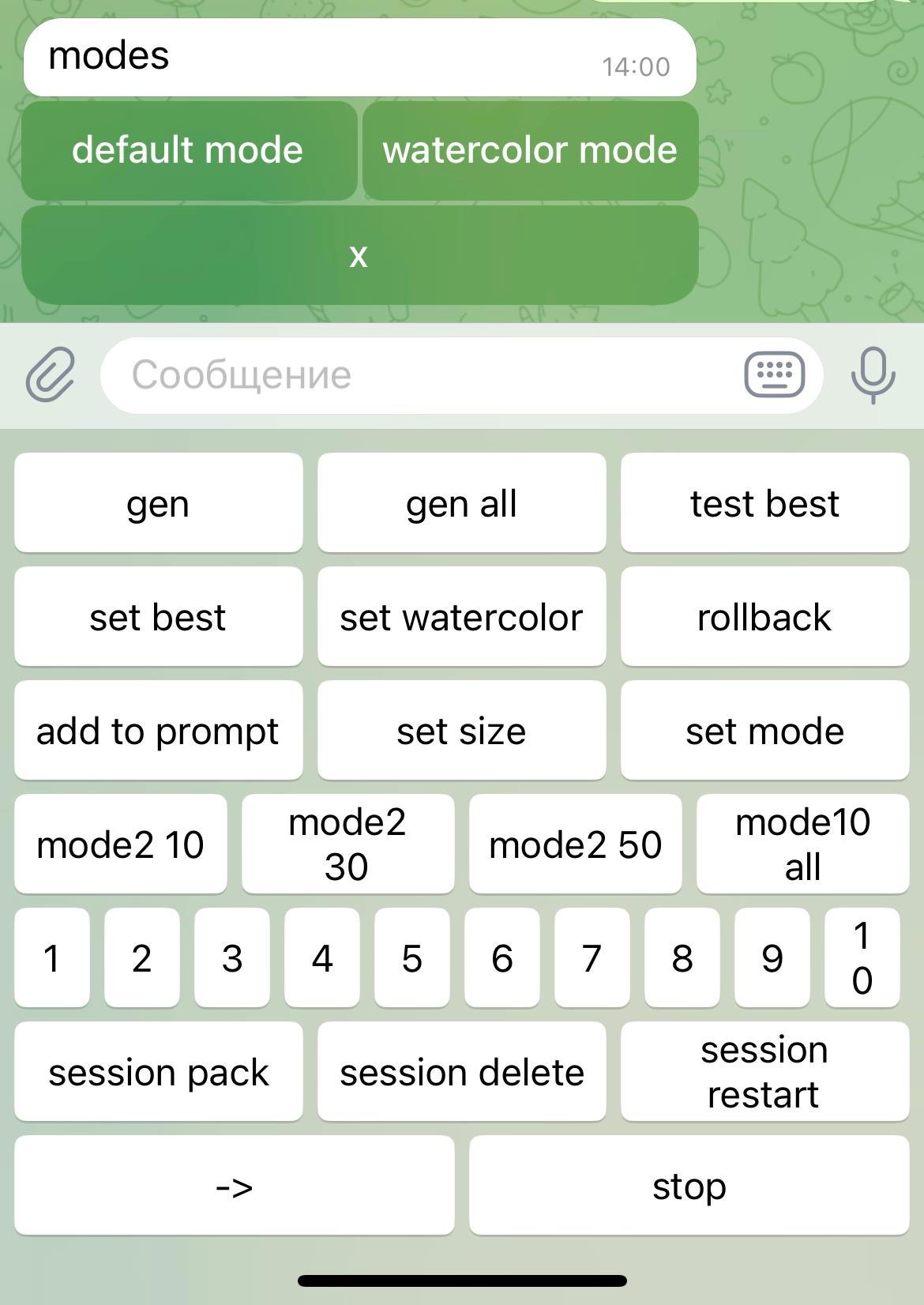 Самая интересная доработка в данном посту, призванная заменить создание отдельных узконаправленных ботов. На примере watercolor mode: