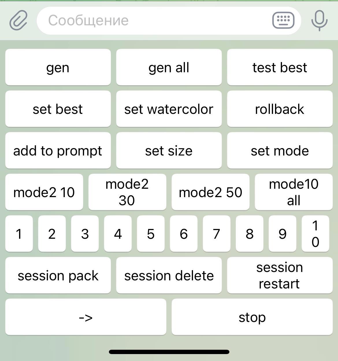 Для тех кто не в курсе: у меня есть свой личный самописный телеграмм-бот для управления нейросетью Stable Diffusion, установленной на компьютере. Благодаря боту я могу заниматься генерацией изображений из любого места где есть интернет. Делается бот на языке программирования python, и используется в первую очередь для работы с телефона и для автоматизации ряда процессов (перебор моделей и параметров генерации, генерация изображений пачками, и тому подобное)