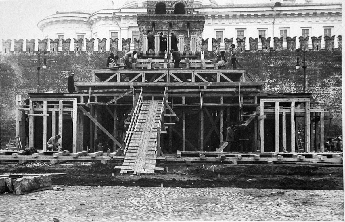 Решение сохранить тело Ленина первоначально возникло «не сверху», а «снизу», по желанию сотен и сотен тысяч людей того времени. Видный американский историк и писатель Р. Пейн, автор одной из авторитетнейших книг на Западе о Ленине, довольно подробно пишет о мотивах возникновения Мавзолея, как усыпальницы вождя Октябрьской революции. «Надо сказать, большевистские вожди не ожидали столь могучего взрыва чувств народа. Несколько километров от Горок до ближайшей железнодорожной станции люди несли гроб на своих плечах. И потом, уже в Москве, в самую пургу, его гроб снова несли на плечах от Павелецкого вокзала к Дому союзов, бывшему дворянскому Благородному собранию. Со всех концов России несметными тысячами в Москву стекался народ. Людские потоки устремились к Колонному залу. Утопая по колено в снегу, в двадцатиградусный мороз паломники выстраивались в длинные очереди. На улицах горели огромные костры, так люди пытались хоть немного согреться. Поначалу было решено, что каждую ночь двери, через которые в Дом союзов текла очередь, будут закрываться. Но они оставались открытыми днём и ночью. С каменными лицами, не отрывая глаз от мертвого тела, они молча шли мимо гроба и, даже находясь почти у выхода, повернув голову назад, продолжали смотреть, как завороженные, на восковой лик, покоящийся на подушке». Под сводами Колонного зала приглушенно слышались звуки революционных песен, которые доносились снаружи. Их пели многотысячные толпы, ожидавшие очереди на улице. Откликаясь на многотысячные предложения потрясённых до глубины души смертью Ленина отдельных граждан, коллективов фабрик и заводов сохранить тело вождя для грядущих потомков II Всесоюзный Съезд Советов принял постановление над могилой Ленина возвести на Красной площади «достойный мавзолей».