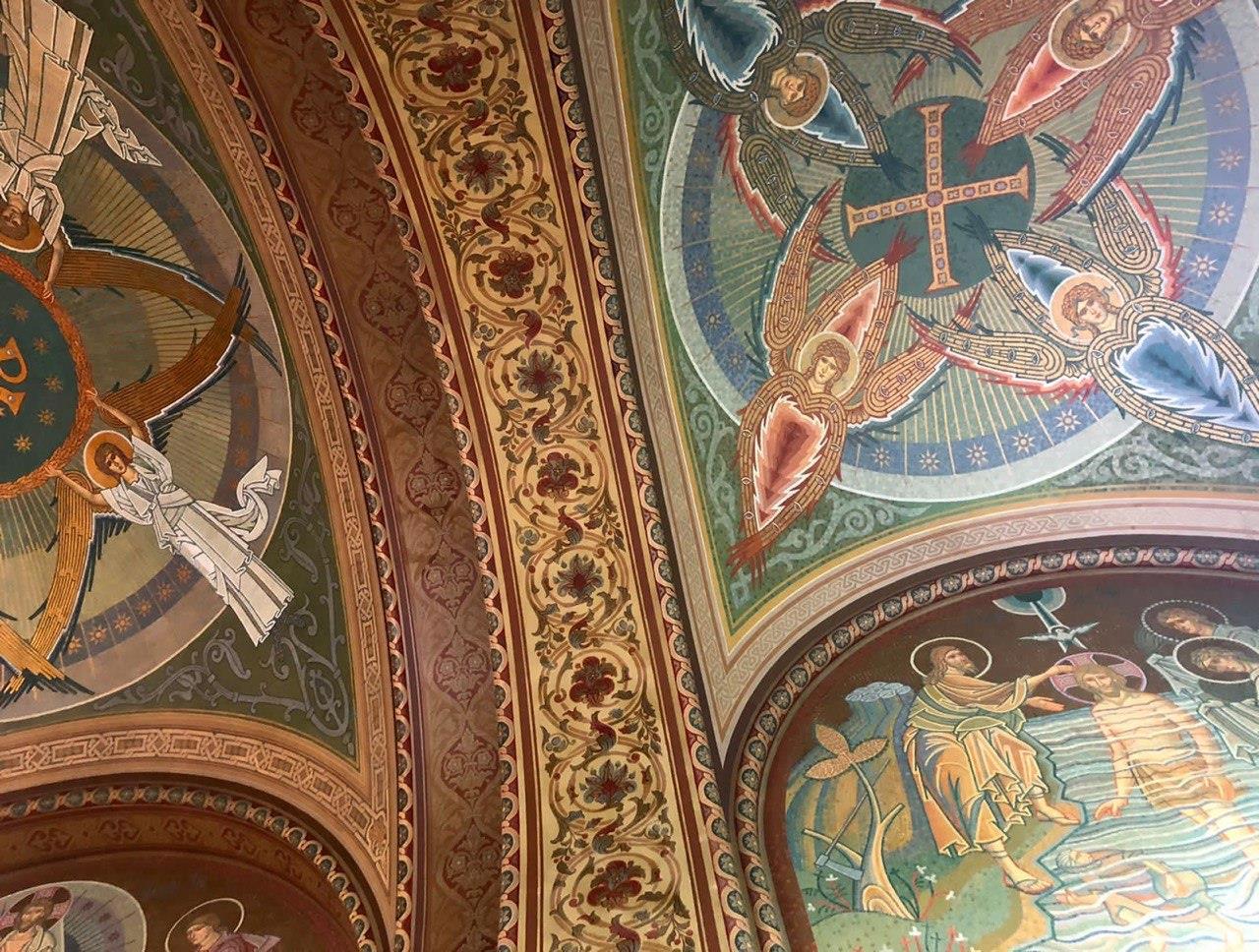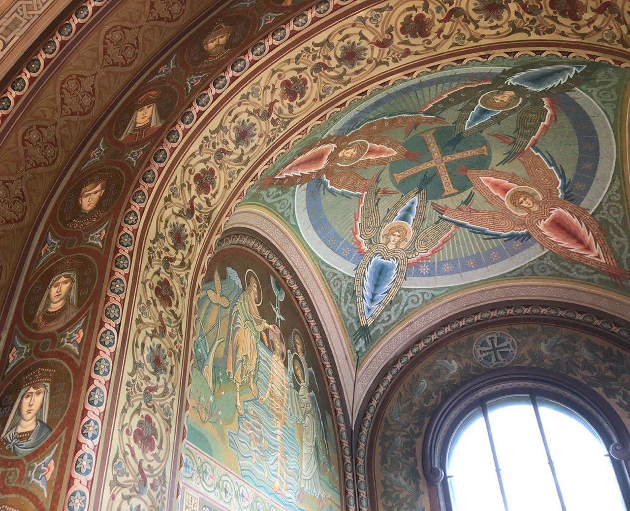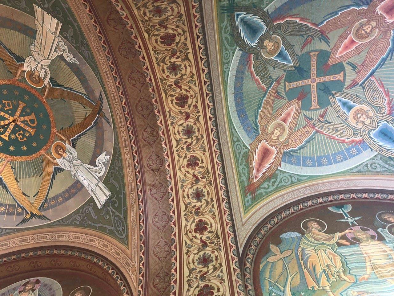 Вадим Шаронов — уже более десяти лет — работает совершенно один, без помощников. Он расписывает Храм Святой Равноапостольной Царицы Елены на Кирочной, 41 в Санкт-Петербурге. То, что можно увидеть сейчас на стенах этого храма, поразительно. Это не имеет ничего общего с повсеместными новодельными росписями. Это чудо. Мастерство и одухотворенность. Нежность несказанная. Подвиг земной, человеческий, духовный — тихий и мощный. Призванность.