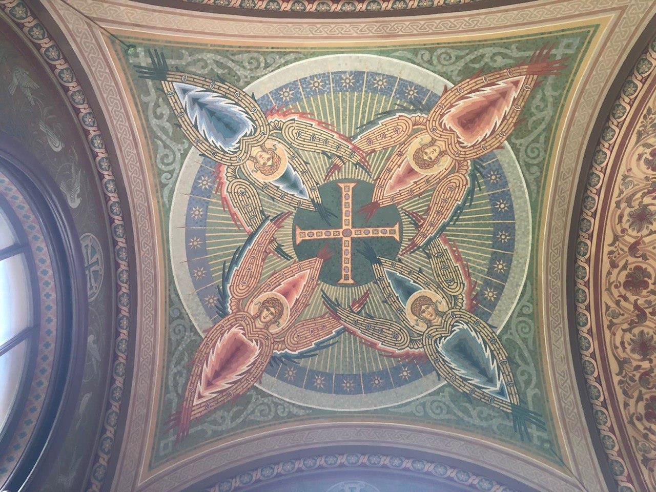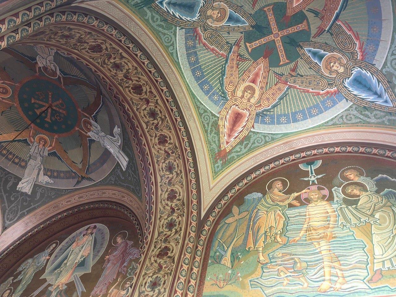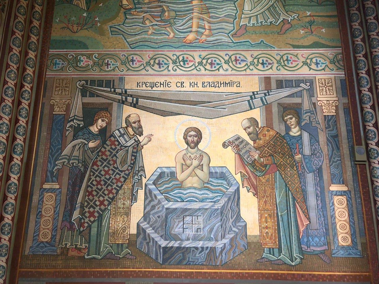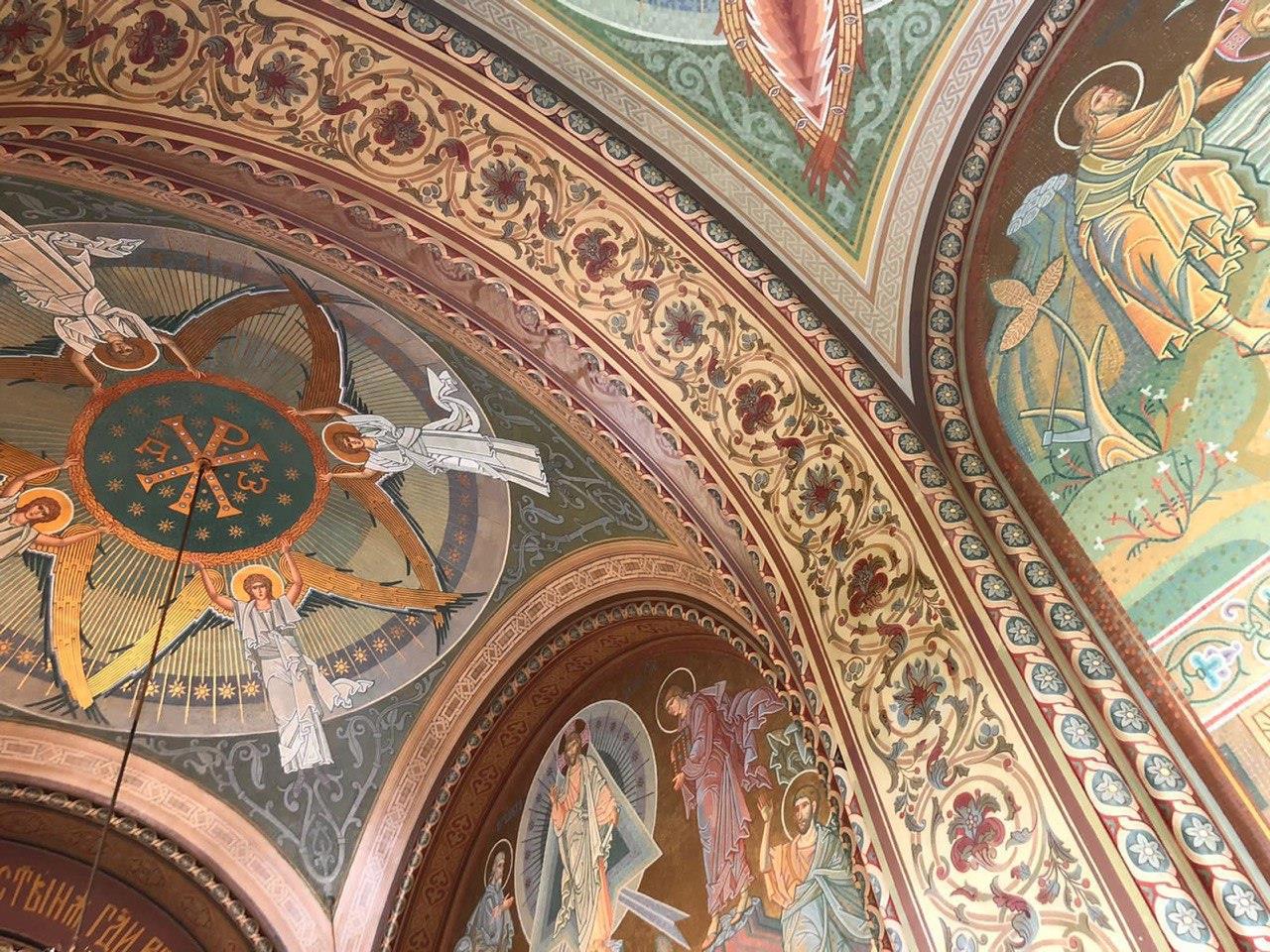 Вадим Шаронов — уже более десяти лет — работает совершенно один, без помощников. Он расписывает Храм Святой Равноапостольной Царицы Елены на Кирочной, 41 в Санкт-Петербурге. То, что можно увидеть сейчас на стенах этого храма, поразительно. Это не имеет ничего общего с повсеместными новодельными росписями. Это чудо. Мастерство и одухотворенность. Нежность несказанная. Подвиг земной, человеческий, духовный — тихий и мощный. Призванность.