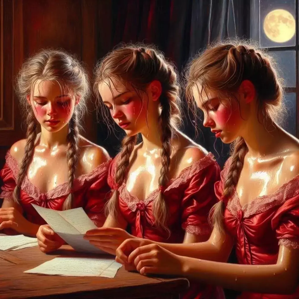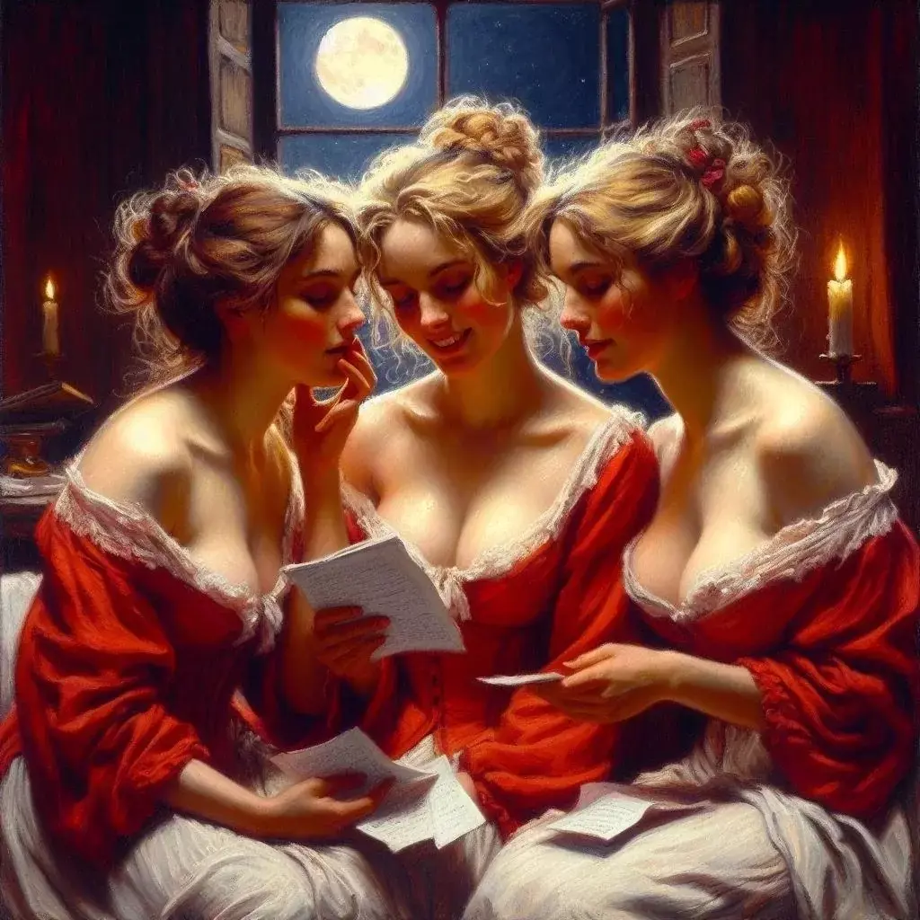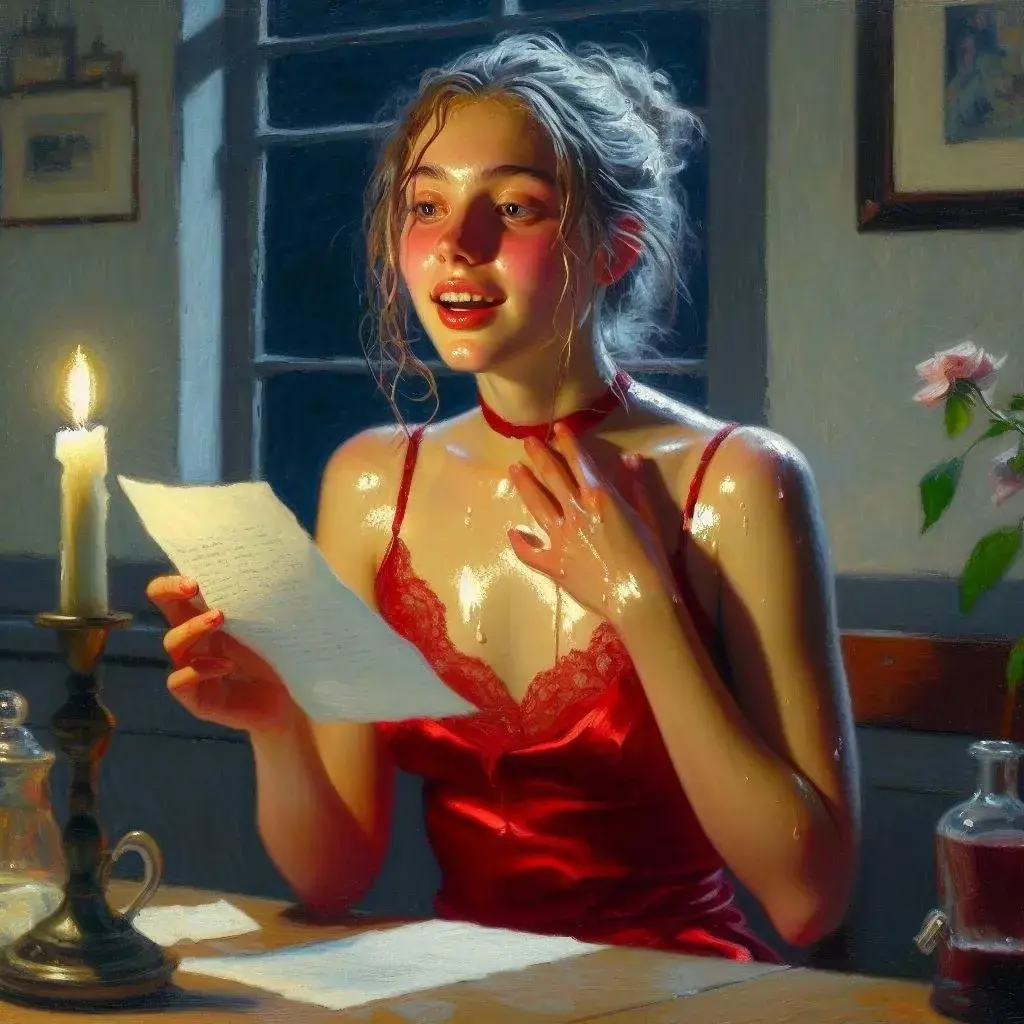 Девушка, обязательно молодая и обязательно красивая... ну хорошо, как минимум, хорошенькая, запиралась в своей комнате, чтобы батюшка с матушка не увидели и не заругали, брала дрожащими от волнения пальчиками свёрнутый свитком и запечатанный сургучом (я - художник, и так вижу) лист бумаги, ломала печать с вензелем любимого и при тусклом свете свечи, а то и вовсе при одной лишь Луне, впивалась глазами в строки, пытаясь разобрать, что там именно написано.