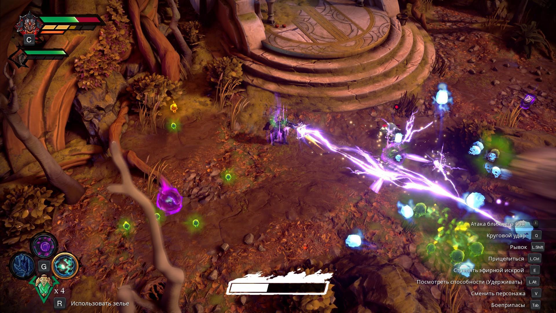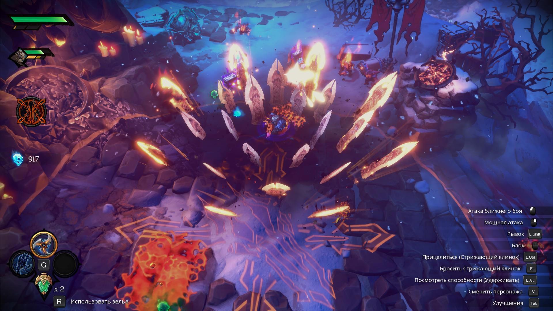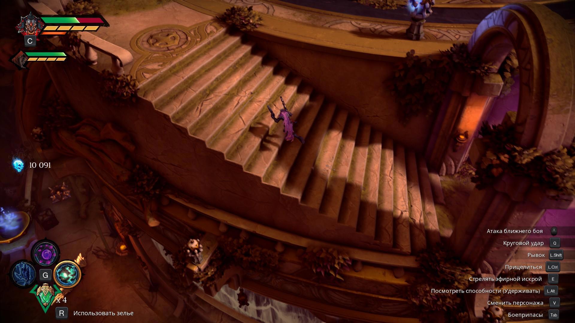 А вот в этом пункте нас ждёт неожиданное. Авторы этого вбоквелла решили отойти от стандартов предыдущих частей и запилили самый настоящий изометрический слешер с видом сверху и возможностью играть вдвоём. Как я уже говорил, главные действующие лица – это Война и Раздор. Если проходить кампанию соло, то можно переключаться между братьями, ну или не делать это (я, например, почти всё время играл Раздором), но думаю, что игра раскрывается полностью именно при совместном прохождении.