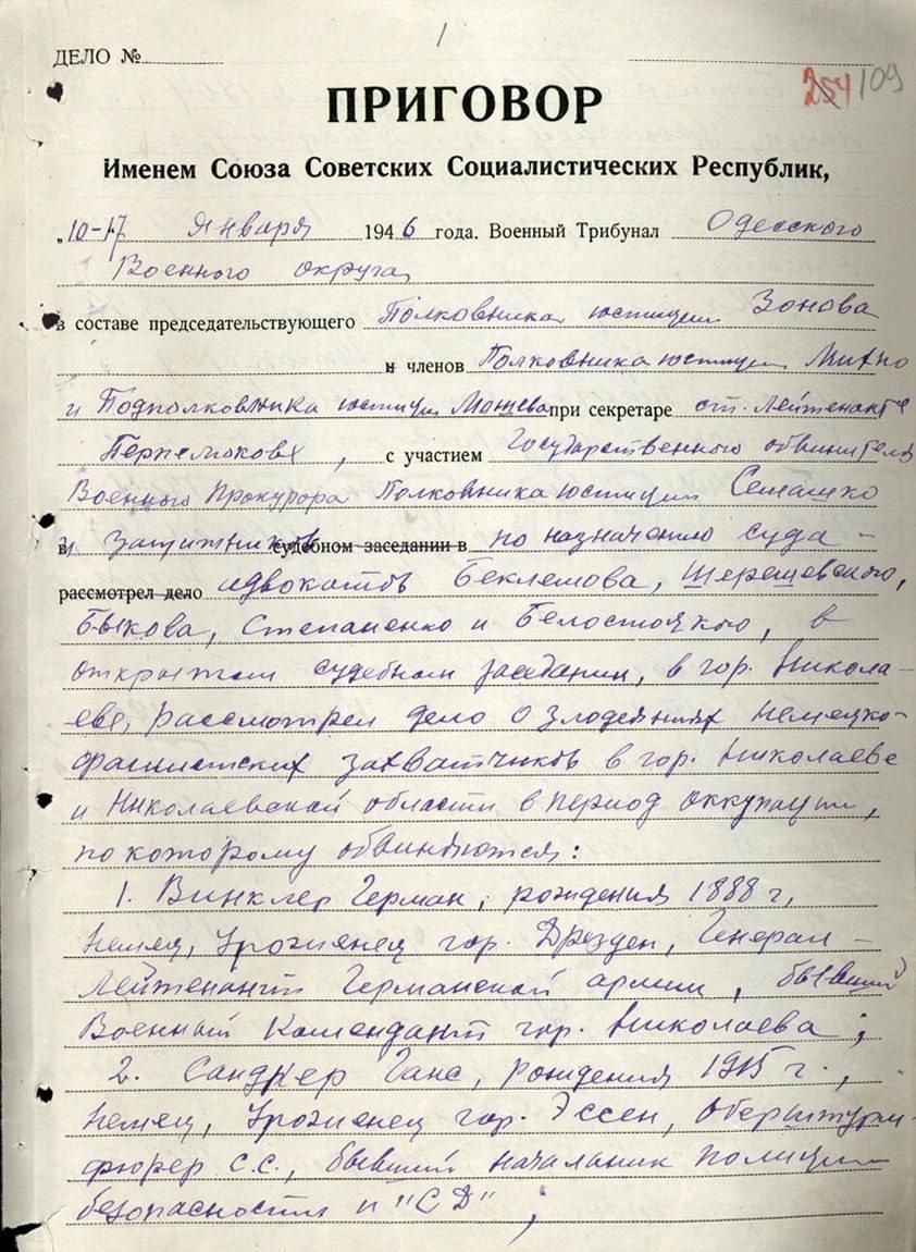 78 лет назад – 17.01.1946 в городе Николаеве завершился судебный процесс над бывшими военнослужащими германской армии – нацистскими преступниками.