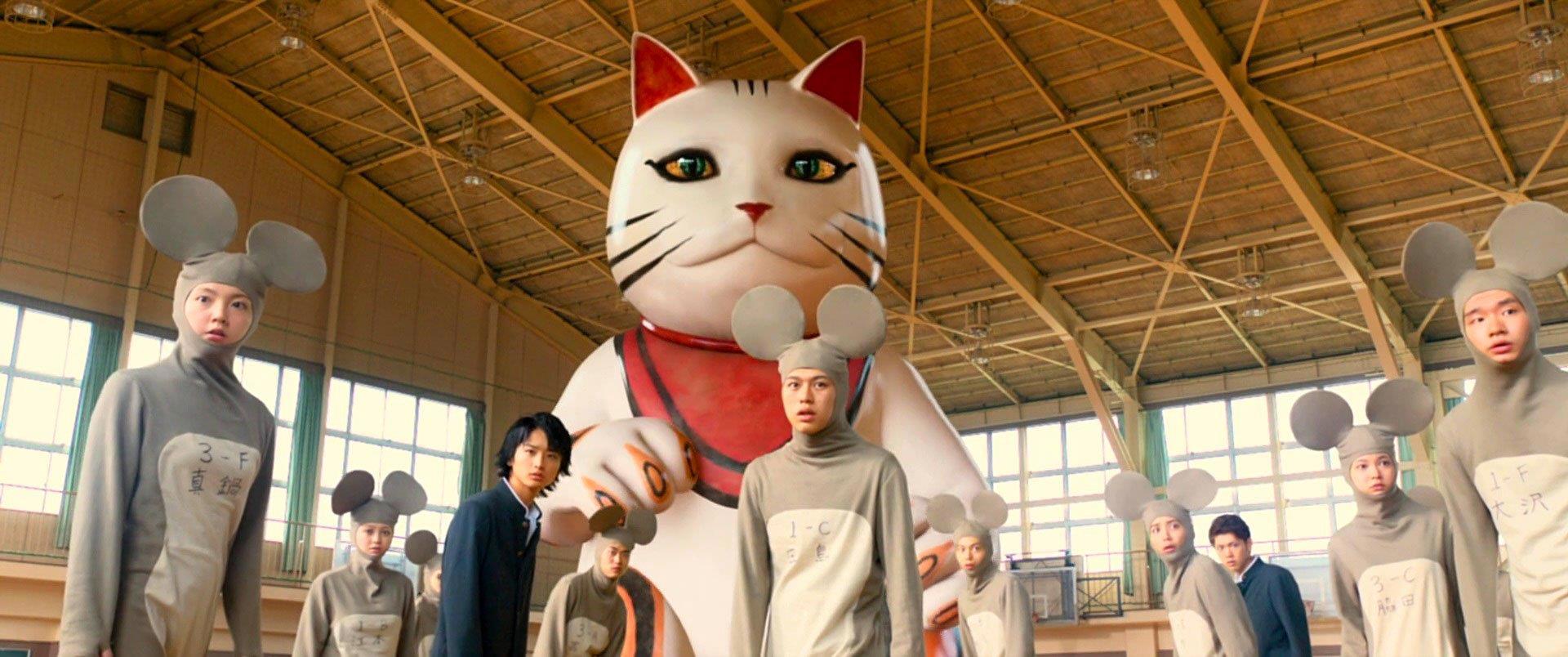 2) «Манэки-нэко» - работает по более сложному алгоритму. «Кошка» (шестиметровый робот в виде кошки), что сжирает «мышат» (игроков). Надо закинуть колокольчик лузу на шее «кошки», а чтобы выиграть время – почесать ей спину, чтобы она заснула. «Манэки» убивает всех в зале, кто прошел через «куклу Дарума» (из сорока человек выживают только трое). Таким образом и примерно 1500-1600 чел. и прошло дальше три (главный герой, его любовь и его антагонист). Девушка стандартно любит парня, антагонист – славу и избранность, а главный герой не любит никого, даже самого себя.