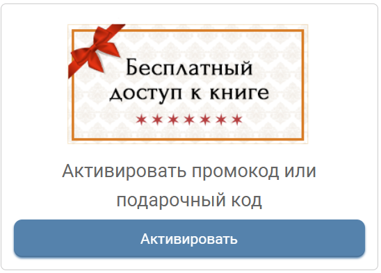При выборе этого способа вы покупаете не сам доступ к книге, а специальный код (набор латинских букв и цифр), активация которого открывает доступ к книге. Чтобы его ввести, нужно зайти на страницу книги и нажать на кнопку «Активировать».