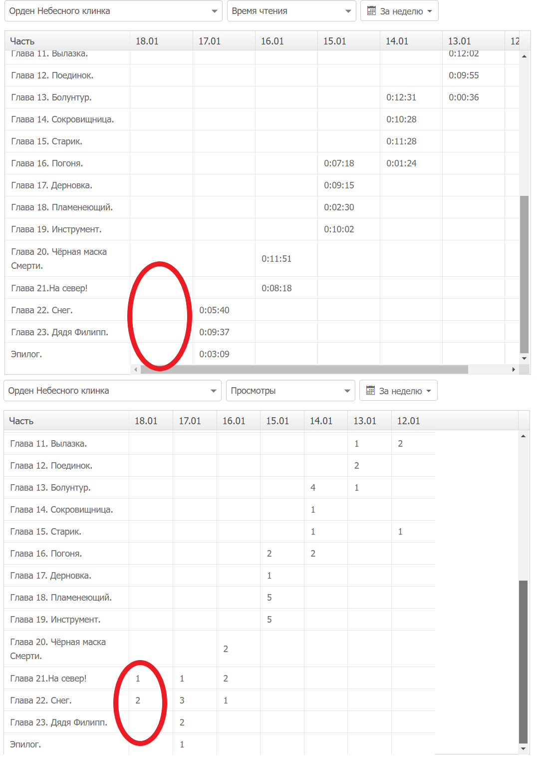 Я так и не разобрался, что точнее просмотры или часы чтения. А может искать среднее арифметическое? Нужно карты таро разложить, перед анализом? Или тут, как со стаканом - зависит от точки зрения? Кому верить-то?!