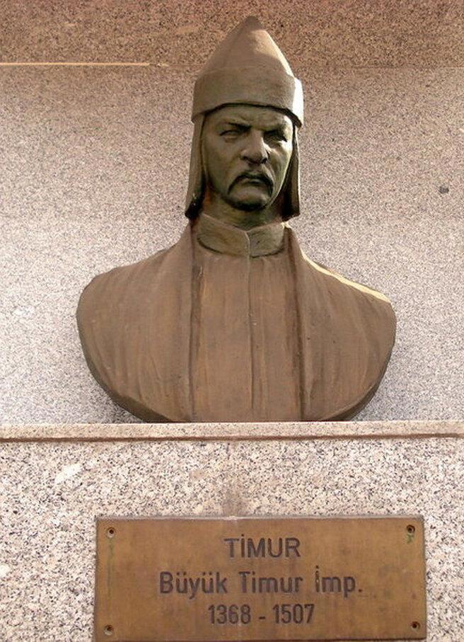 Есть и надпись, которая гласит, что это есть «Тамерлан правитель Тартарии повелитель гнева Божия и сил Вселенной и благословенной страны убит в 1402 году». Не сильно похоже, но определённое сходство есть. Европейские признаки можно не принимать во внимание. Для национальных художников это вообще нормально. Ну и последнее изображение, которое изваяли в Турции, которая его почему-то считает своим в доску:
