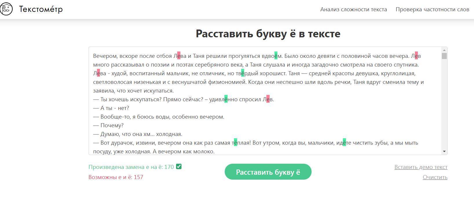 Автор: Лев ВишняЕще одна полезная программа, расставляет буквы "ё"