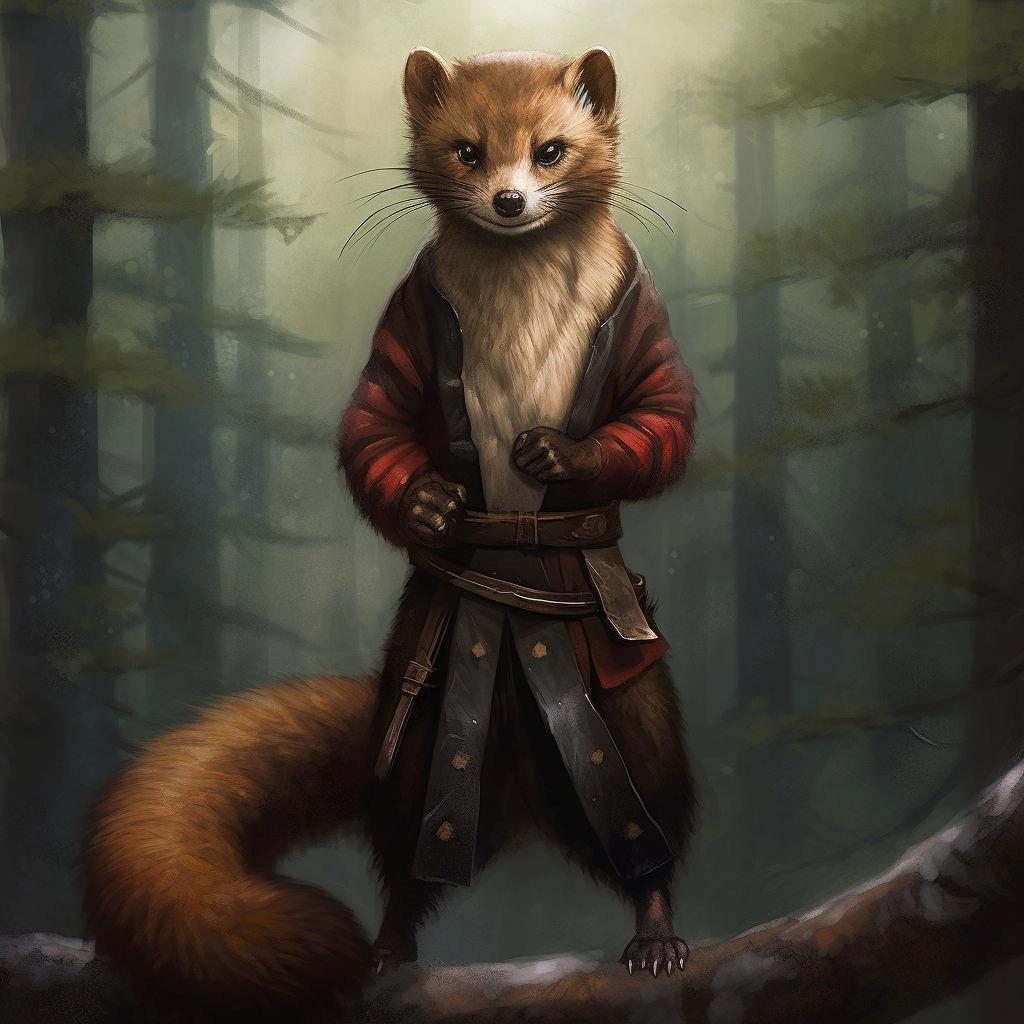 И, да, самое главное – тело куницы облегал пояс с маленькими ножнами, а в правой лапе он держал короткий лук. Это было разумное существо.