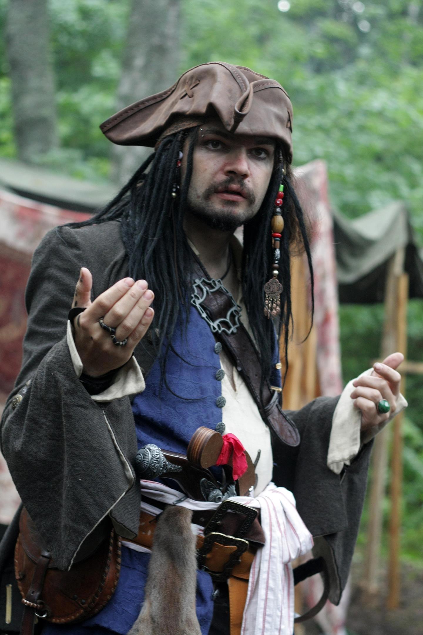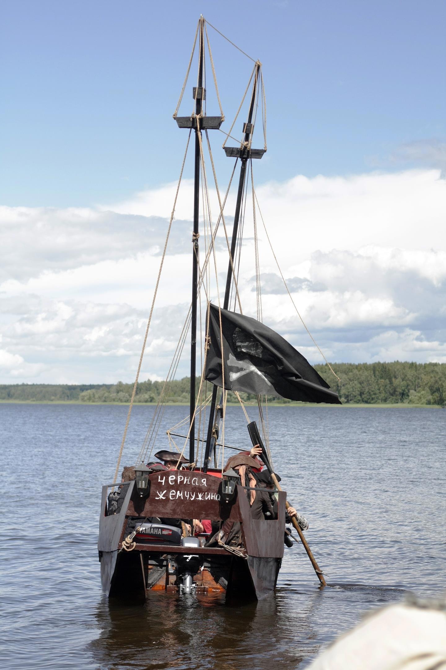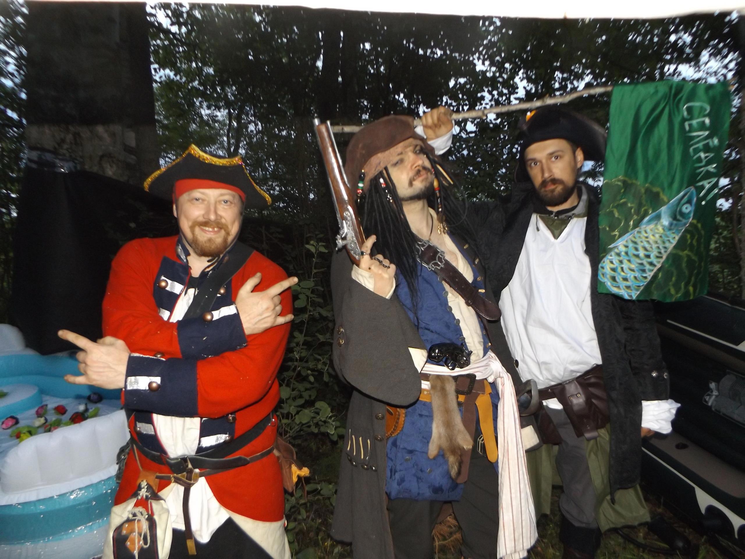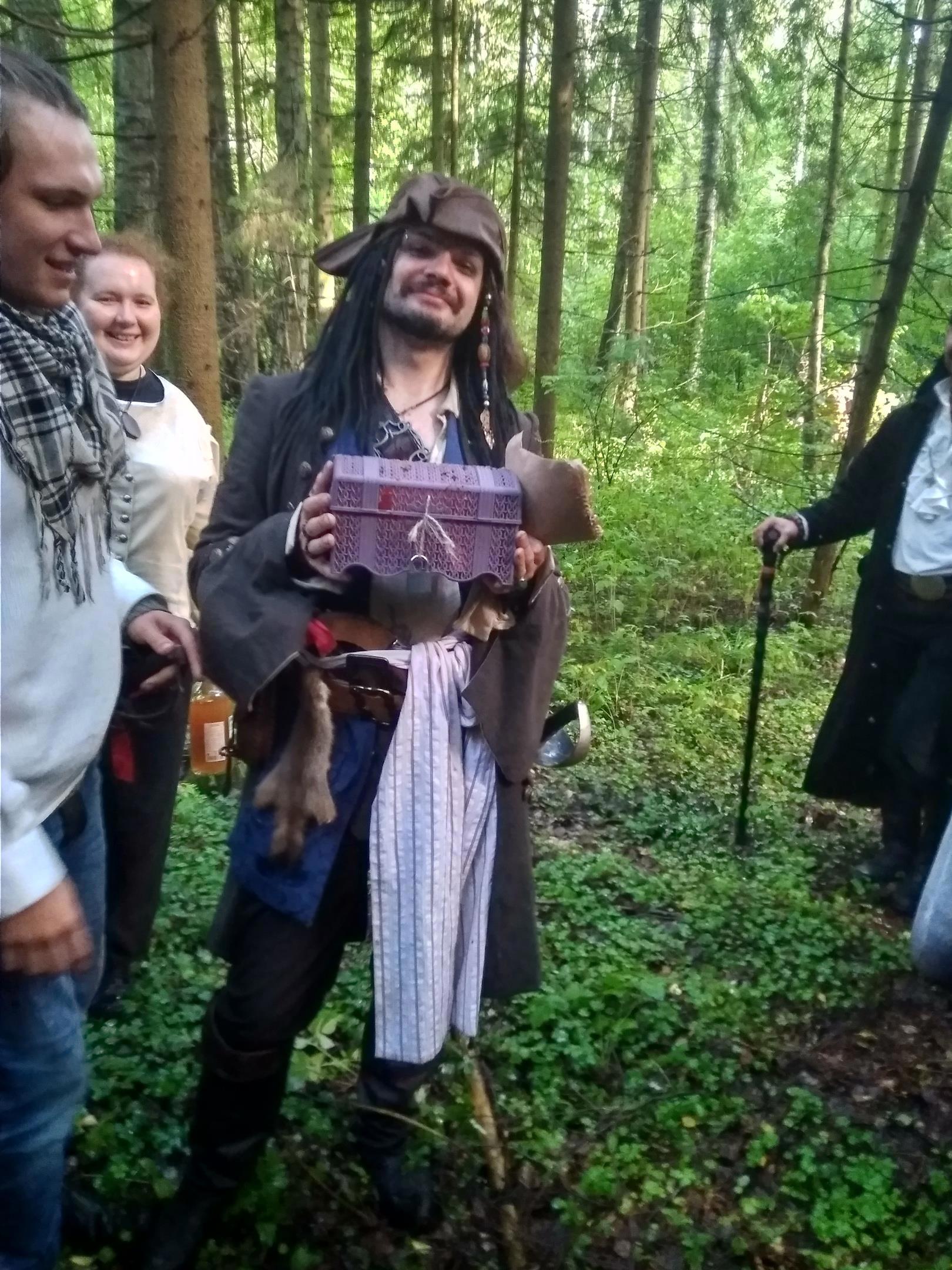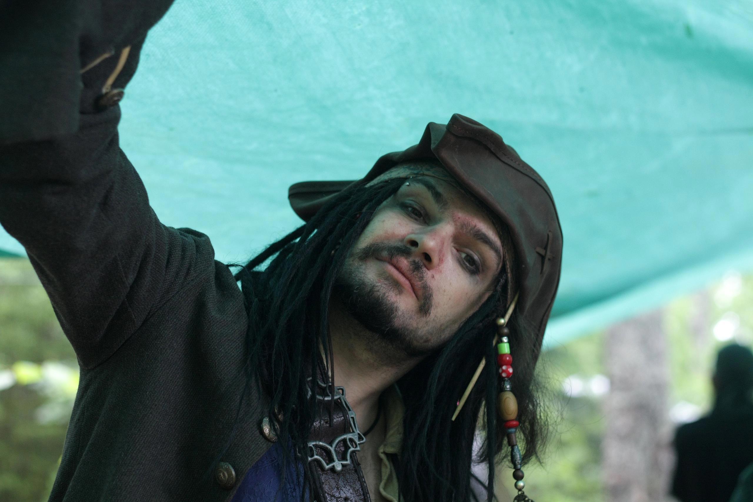 Ну и, конечно же, я не мог упустить случая еще раз воплотить одного из самых горячо любимых мной персонажей - знаменитого пройдоху и авантюриста Джека Воробья. Вернее, конечно же, капитана Джека Воробья! На сей раз, в отличие от прошлого года, у меня была даже самая настоящая (ну, почти) Черная Жемчужина с командой бравых головорезов! Надо сказать, погодка приложила все усилия, дабы нам помешать. Во время подготовки к игре разразился 3-балльный шторм (думаю по фото вы его легко определите) и несколько кораблей отправились в обитель Посейдона не понарошку, а вполне себе реальным образом. К счастью, обошлось без жертв. Не знаю, как на настоящих Карибах, но вот на Московском море погодка мореплаванию не очень способствует. И, тем не менее, мы очень даже славно поиграли. А я, наконец, закрыл гештальт и сумел победить самого Дейви Джонса!