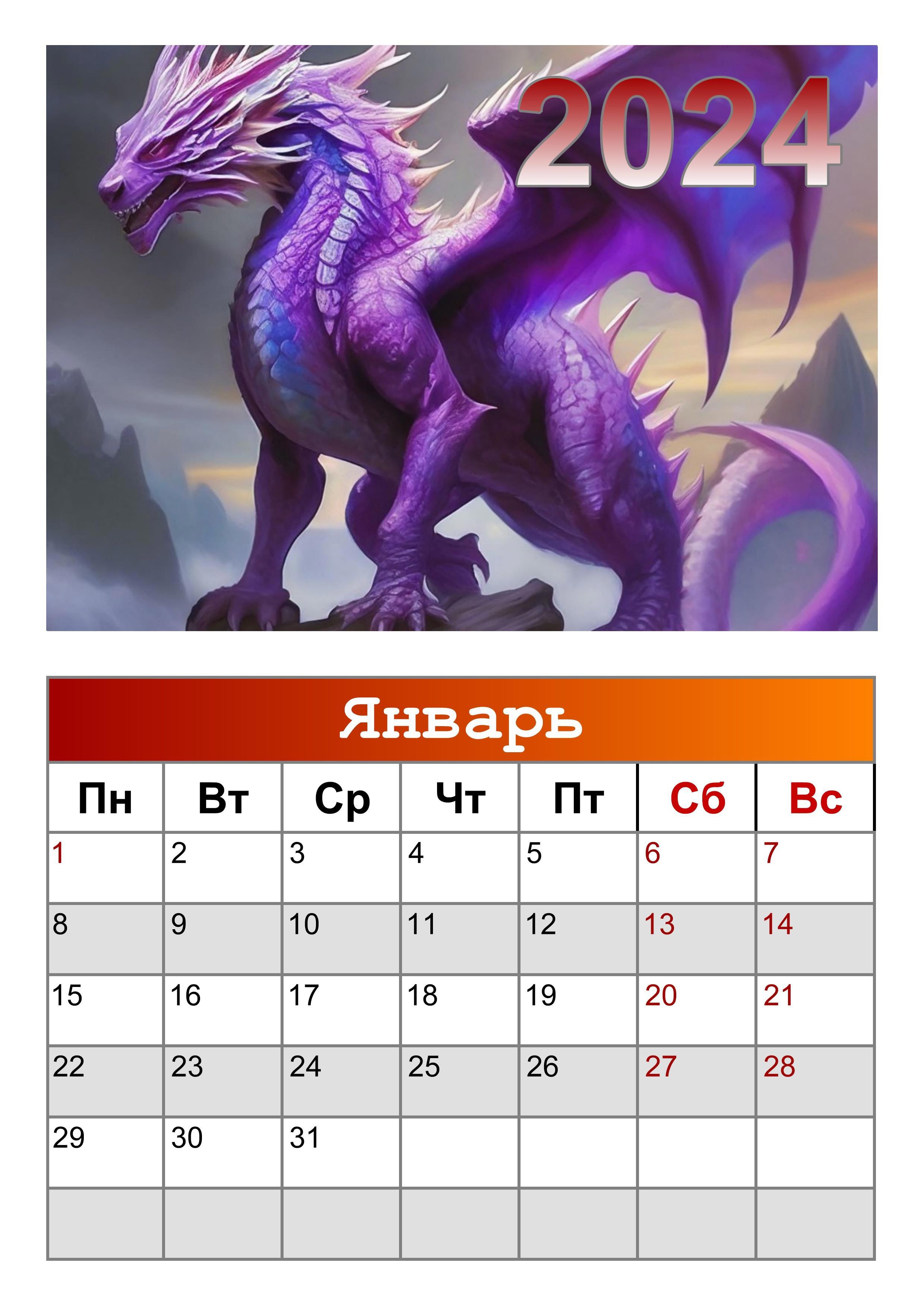 Автор: ЭленВ прошлом году я пыталась найти нормальные календари с драконами. Но в магазинах Хабаровска мне как-то не попалось ничего стоящего. Тогда я решила создать 12 картинок с драконами при помощи нейросети и сделать календарь сама. И вот что из этого вышло.... Январь 2024: