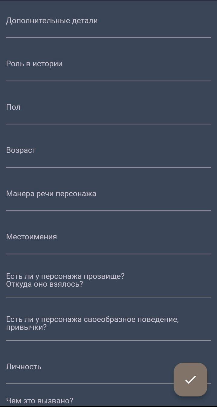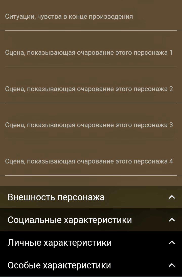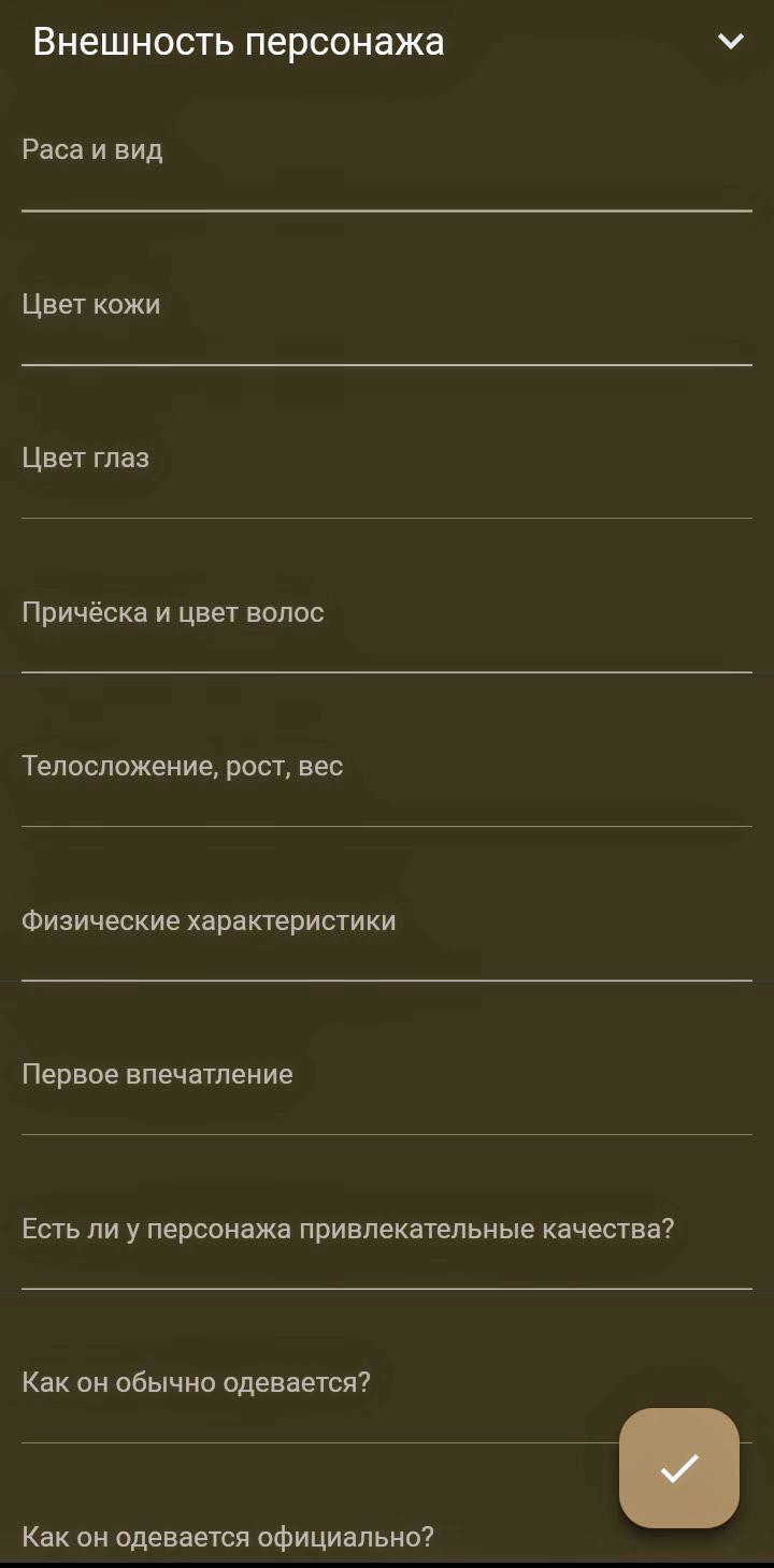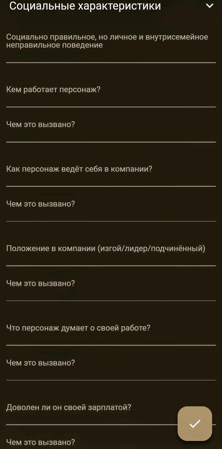 Как вы сами видите пунктов для заполнения анкеты персонажа очень много. Помимо основных есть и дополнительные:
