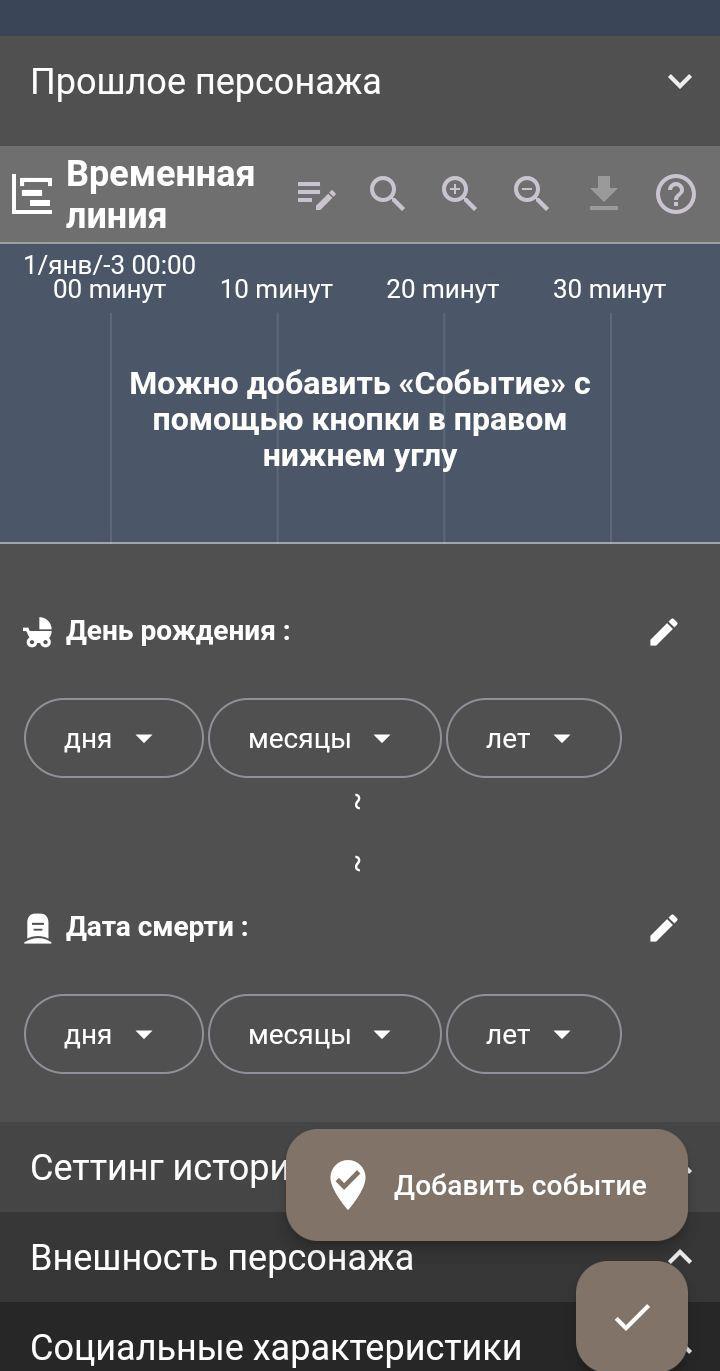 Заполнив пункты о временной линии переходим к персонажам. И вот тут- то можно почувствовать себя немного Богом: