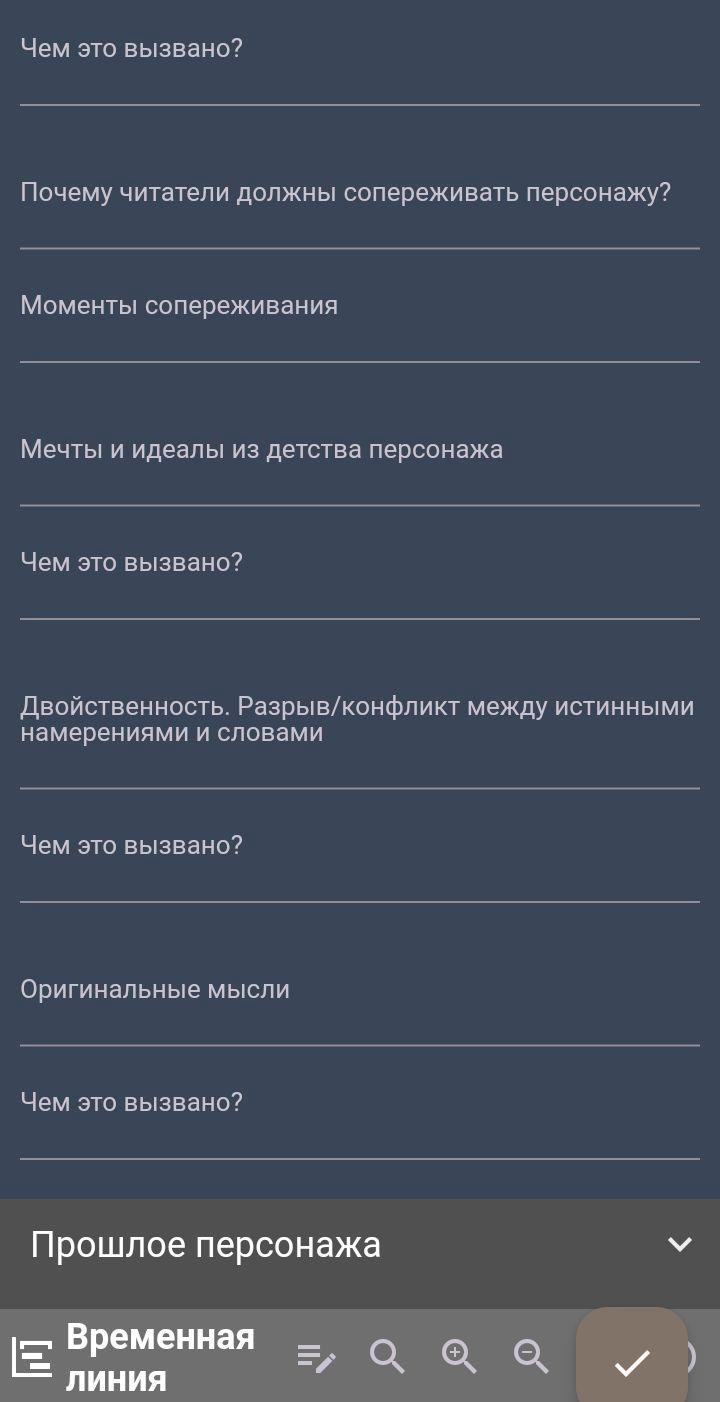 В общем в этом приложении есть все что нужно и даже больше. Работа превращается в удовольствие и комфорт. Помимо приложения также есть сайт https://storyplotter.net/ru мой восторг и благодарность разработчикам, в особенности за возможность хранить и импортировать свои данные на другое устройство, что для меня как человека теряющего свои записи в неподходящий момент очень и очень актуально и важно!