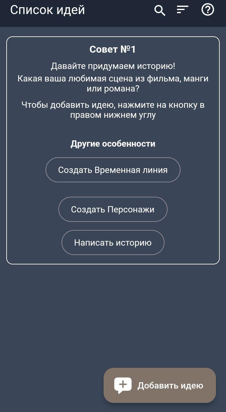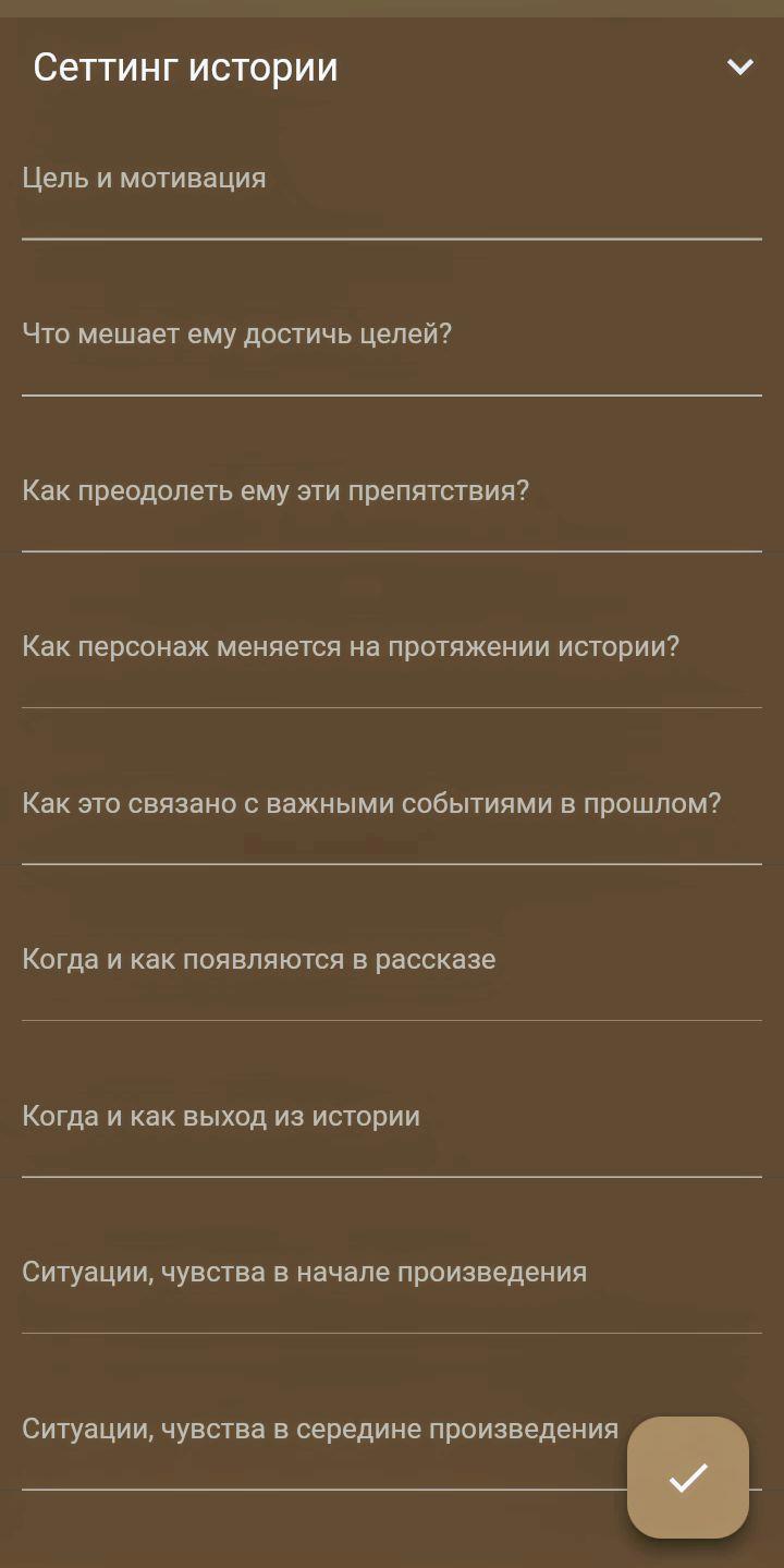 Каждый из вопросов помогает создать не просто картонного героя, а Личность! И объединить в одно целое все разрозненные замечания и заметки. Это очень удобно и увлекательно! Но начать конечно же можно не с этого, а с "Написать историю":