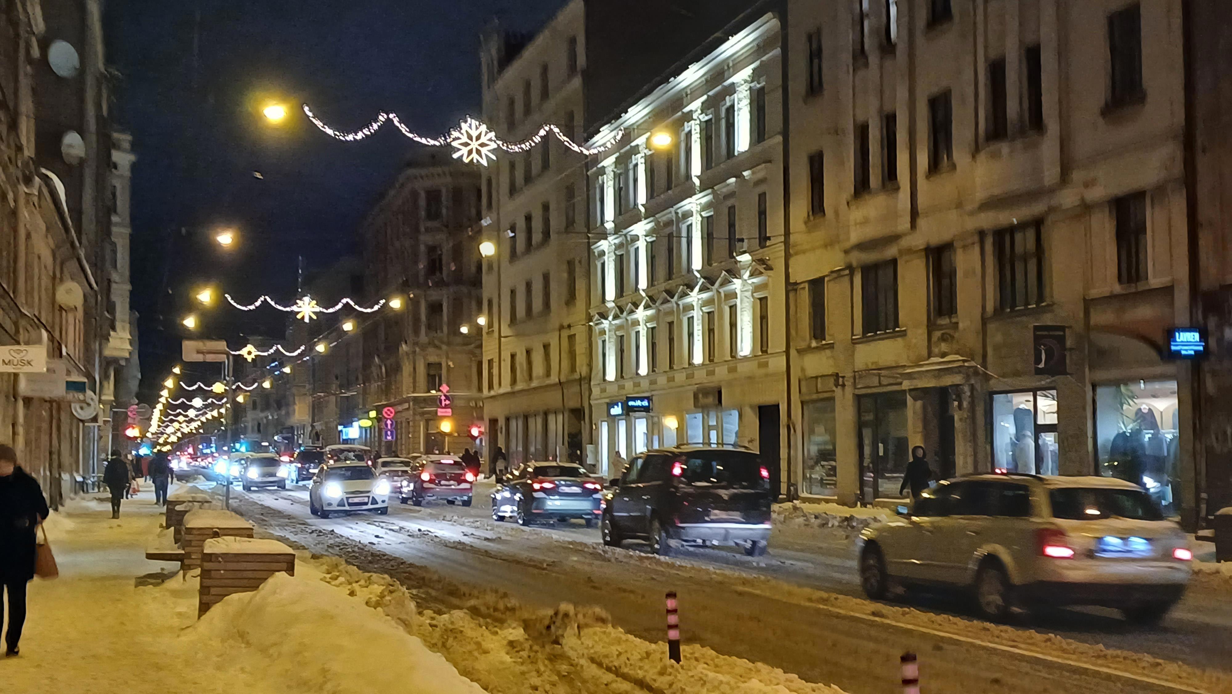 Рига. Январь 2024 ул. Марияс и перекрёстки ранним зимним вечером