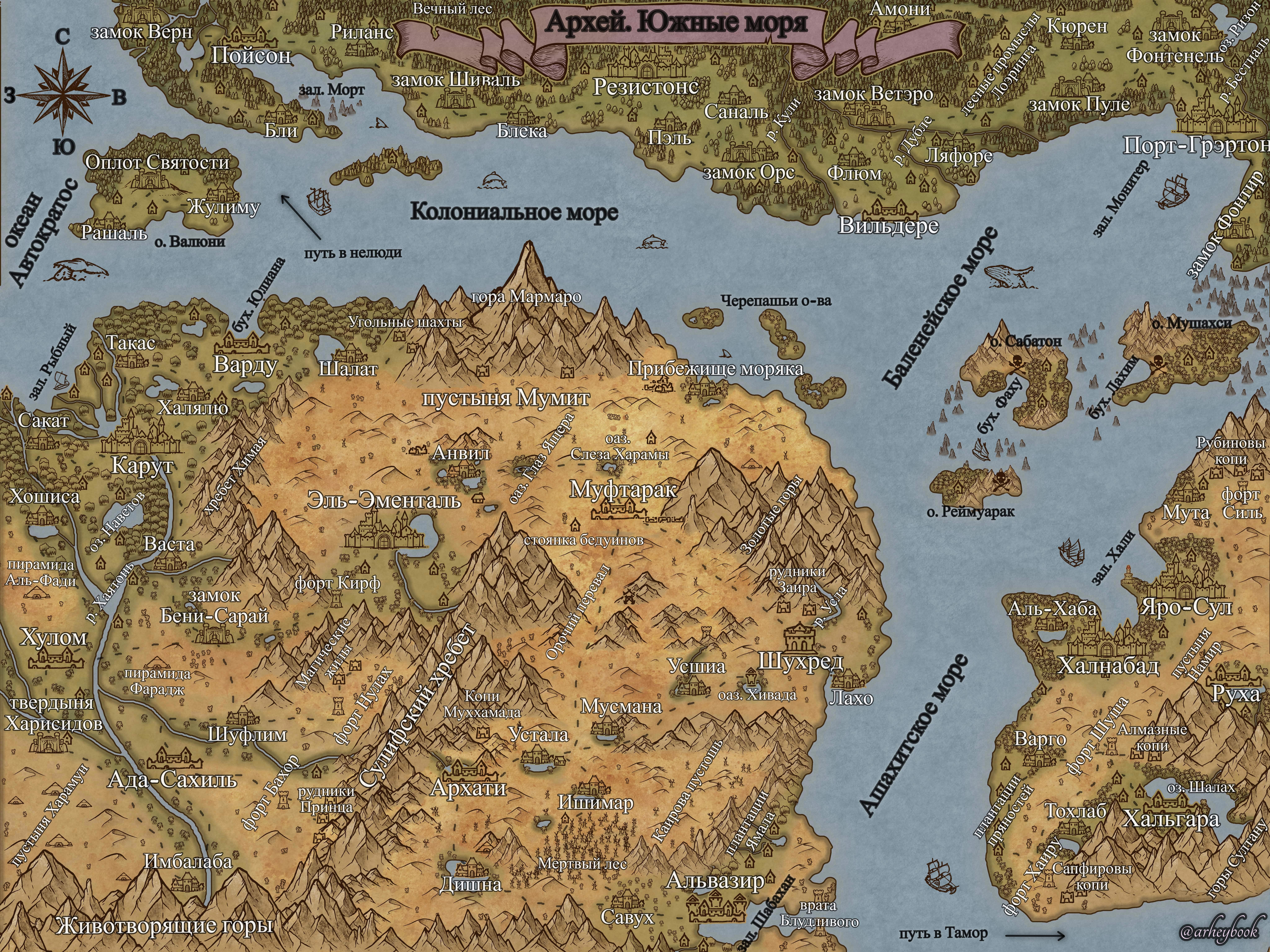 Автор: Дмитрий ЖелезнякРискнул все же сжать созданную для Караванщиков Анвила карту региона. Вроде получилось читаемо, но если хотите посмотреть в лучшем качестве, то на странице книги в примечаниях от автора есть ссылка. Там HD качество - 8к.