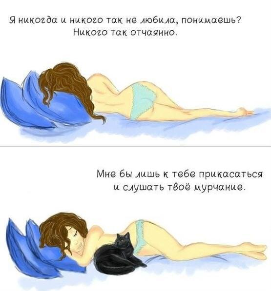 Температура тела кошки приблизительно 38,6° C. Поэтому им необходимо гораздо большее количество тепла, чем человеку, чтобы согреться. Ну а что может быть уютнее, чем тепленькая хозяйка или хозяин? Хотите - верьте, хотите – нет, но кошачья шерсть производит токи низкой частоты, схожие по своему действию с вырабатываемыми дорогостоящими медицинскими генераторами. Поэтому сон с питомцем под боком может оказаться чрезвычайно полезным для здоровья хозяина.
