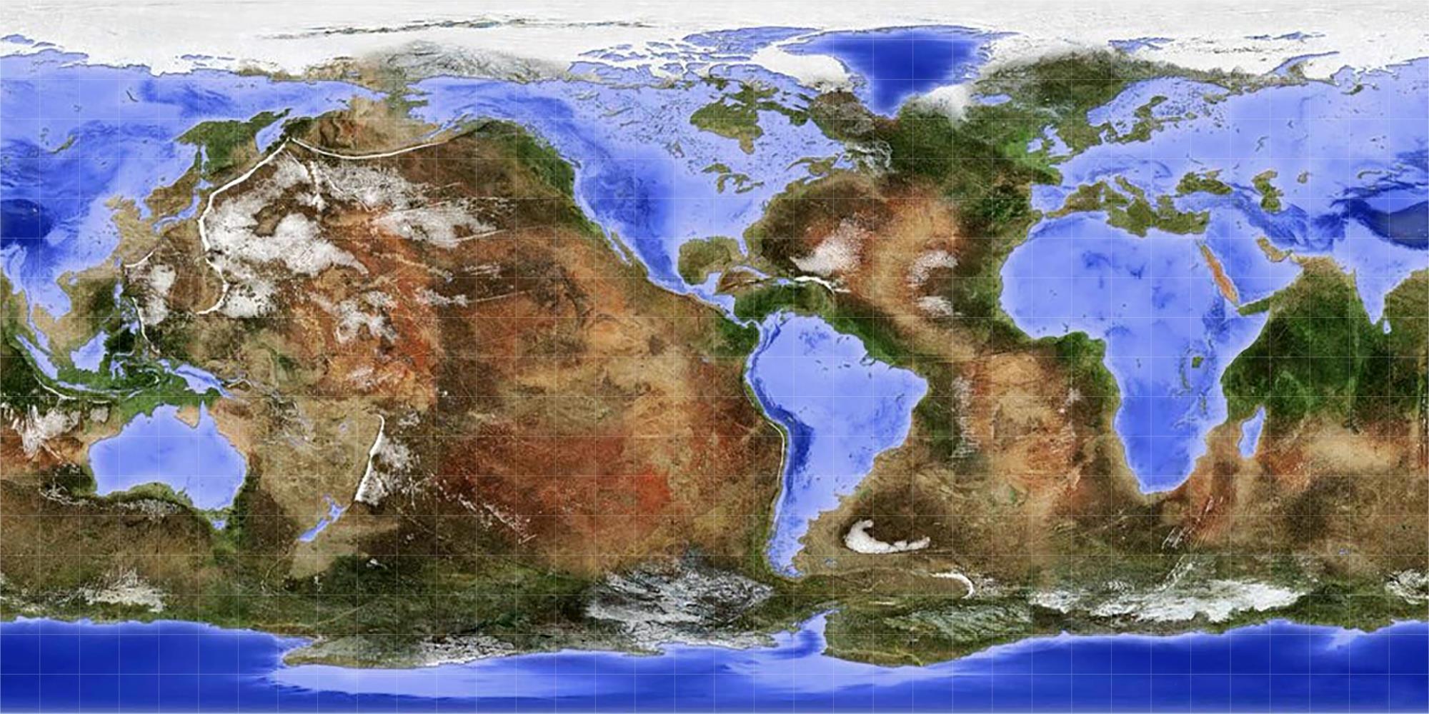 Да, насчет карт. Как-то раз подумалось: что, если взять нашу, всем знакомую земную географию - и вывернуть её наизнанку? То есть величайшие вершины станут величайшими глубинами, и наоборот; там будут Северо-Американский и Южно-американский океаны, Африканский океан, Австралийское море, остров Байкал, Марианский горный хребет и впадина Джомолунгма... Понимаете, да? Всё наизнанку - или, как ныне принято обозначать в графических программах, инвертировано. Причем даже не нужно сильно изгаляться, придумывая новые географические названия: надо лишь чуточку изменить старые. Идея показалась мне настолько забавной, что я решил поискать в сети: вдруг кто-то уже реализовал подобное? И-и... Да, как водится - всё уже придумано до нас, причем неоднократно! Вот, смотрите: