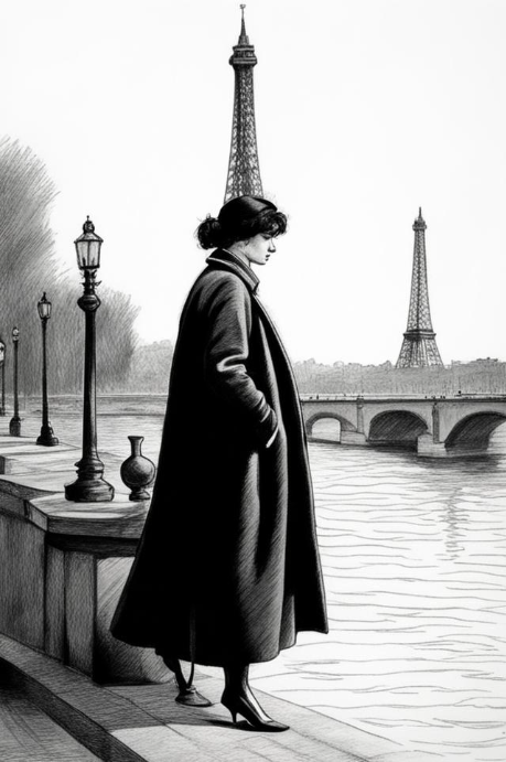 Получаю Анну Ахматову (!), стоящую (!) на набережной, максимум в октябре, в "лодочках" (попробуй в них пошагай размашисто!). И в довершение всего - с ДВУМЯ (Карл!) Эйфелевыми башнями.