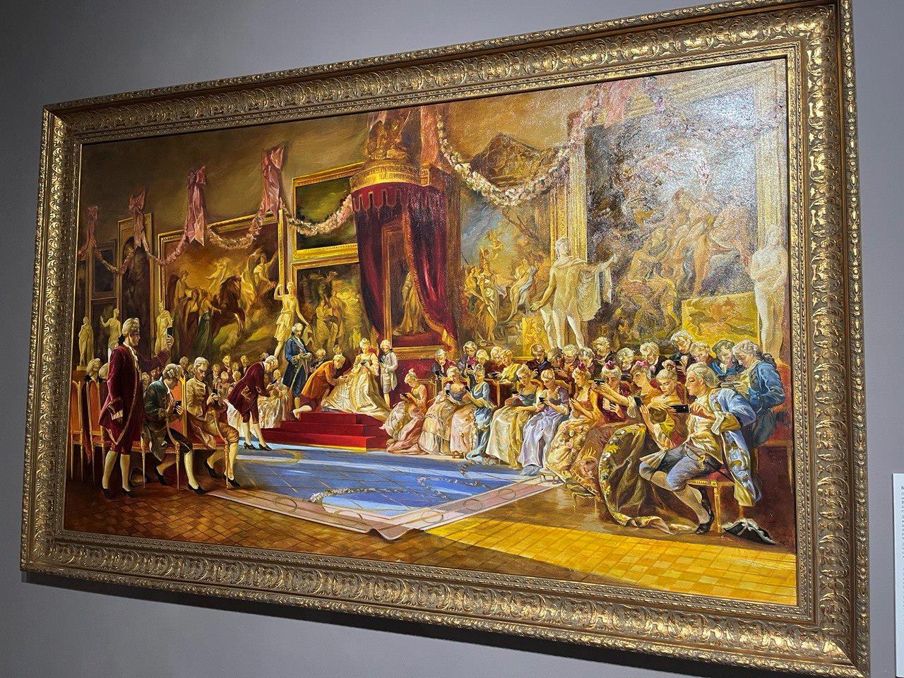 Выставка начиналась с картины: тронный зал и люди, сидящие в телефонах.